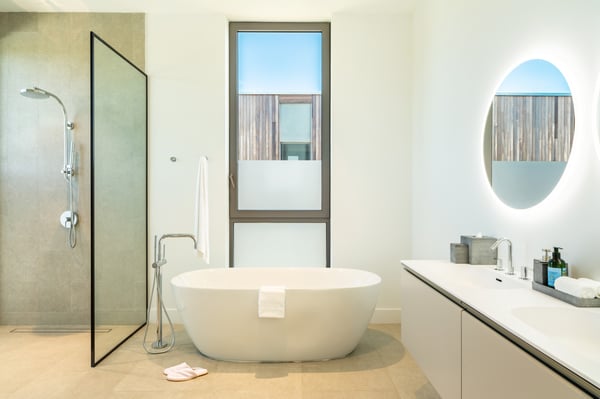 Two stories with stunning views, a private swimming pool, 4 primary bedrooms with king beds and private ensuite bathroom with soaking tub and or showers, indoor and outdoor living space, full kitchen, backyard access where outdoor deck connects directly to the lagoon with non-motorized watersports and more.