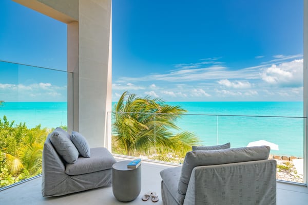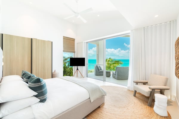 The Reef Estate offers two levels of serene ocean views spanning across two levels, four primary bedrooms with ensuite bathrooms and a half bathroom as well. Awaken the senses with the morning sun and refreshing ocean breeze, poolside or various sun-rich terraces. On the interior, enjoy a curated meal with a spacious kitchen, dining and living area. The standalone guesthouse features a king bed with a private ensuite bathroom with a shower, and a room with two twin beds with a private ensuite bathroom with a shower. Both rooms have a private outdoor deck accessible from the bedroom. The guesthouse includes a shared kitchen and dining space, and an outdoor area with a hot tub.