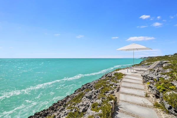 The Reef Estate offers two levels of serene ocean views spanning across two levels, four primary bedrooms with ensuite bathrooms and a half bathroom as well. Awaken the senses with the morning sun and refreshing ocean breeze, poolside or various sun-rich terraces. On the interior, enjoy a curated meal with a spacious kitchen, dining and living area.