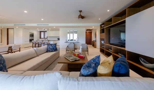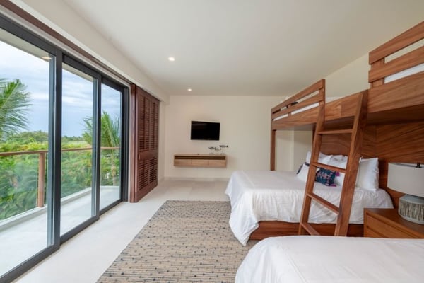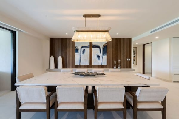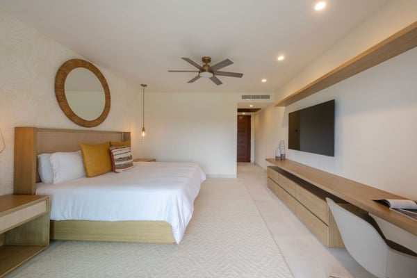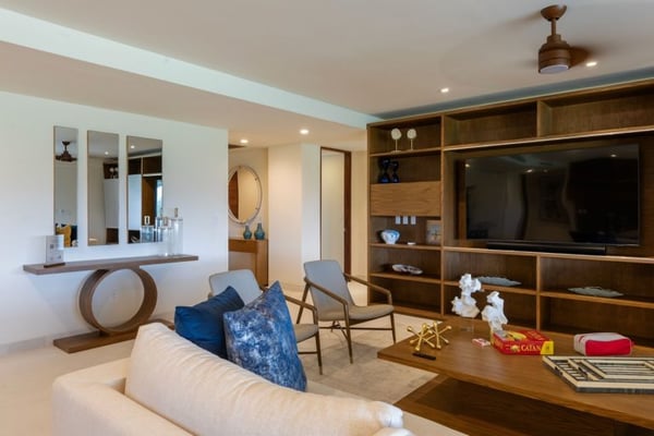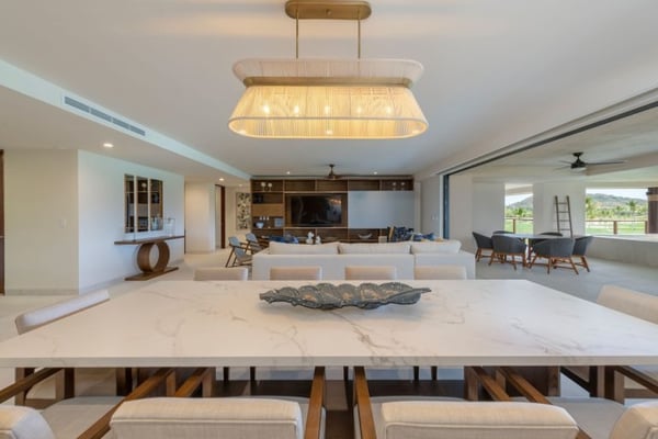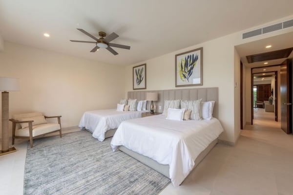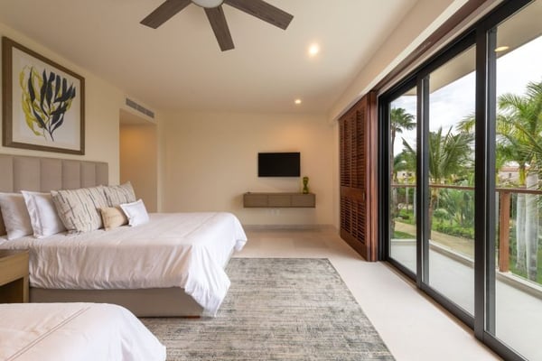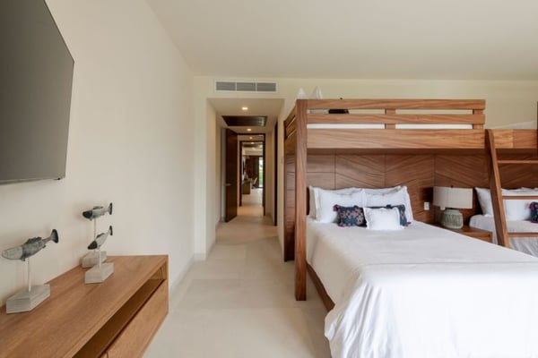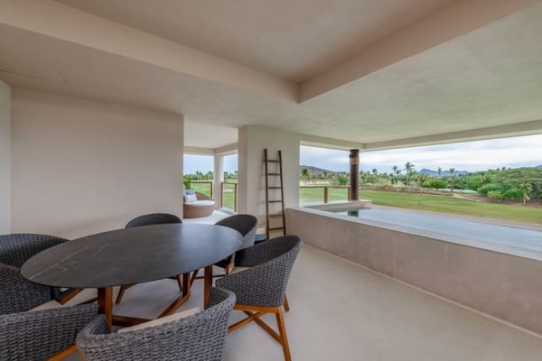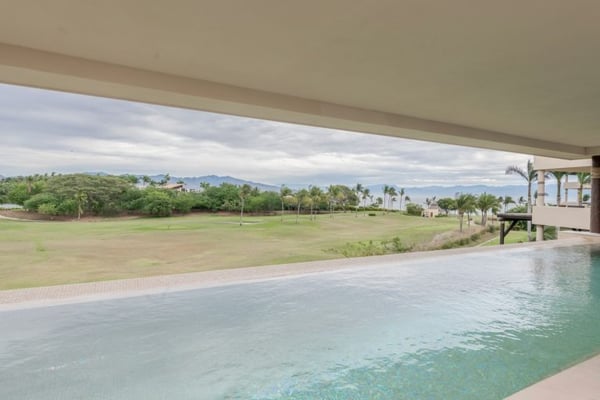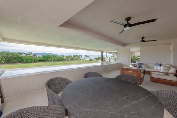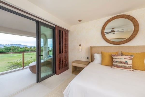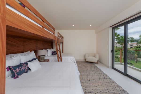 The Premier Golf Membership grants access to Pacifico Golf Course ($), Bahia Golf Course ($), the Tennis Centre ($), the Fitness Center ($), El Surf Club based on min. consumption fee ($), St.Regis Beach Club based on availability and min. consumption fee ($), Pacifico Beach Club, Sufí Ocean Club and Kupuri Beach Club. Contact one of our Villa Specialists for more information. Discover your perfect getaway at this luxurious 4-bedroom condo in El Encanto, Punta Mita. Perched elegantly to offer panoramic views of the Pacific Ocean and the lush greens of the Jack Nicklaus world-class golf course, this residence promises an unforgettable stay. Relax by your private pool or wander down to the pristine beaches with your personal golf cart just moments away. The condo boasts sophisticated interiors, a gourmet kitchen, and expansive terraces ideal for alfresco dining. Don’t miss the chance to create lasting memories in one of the newest communities built.