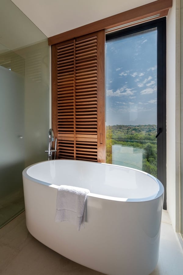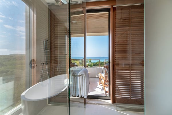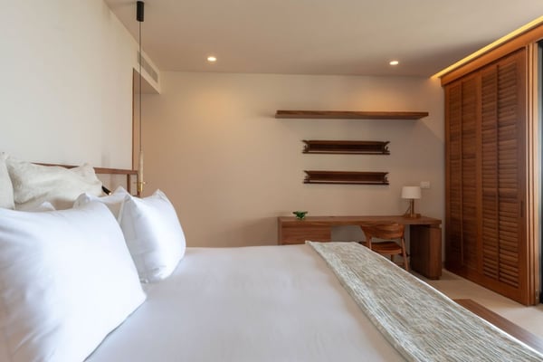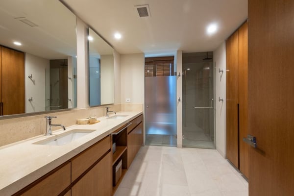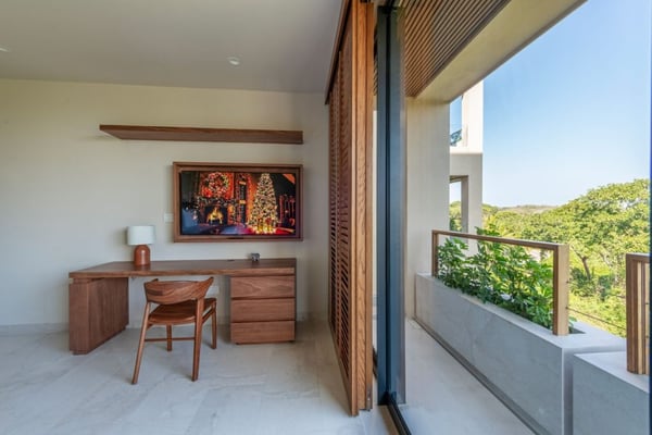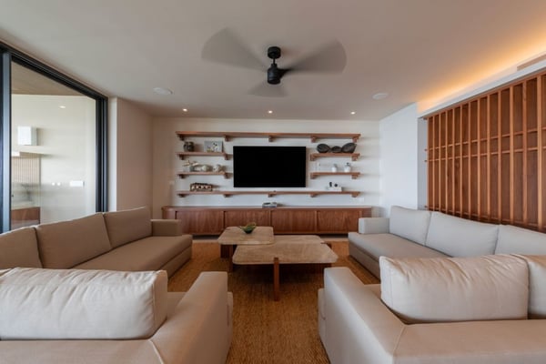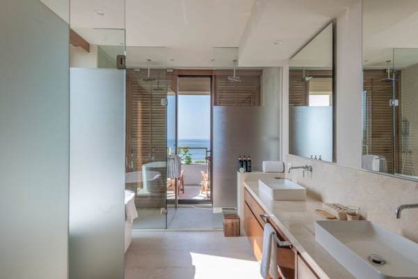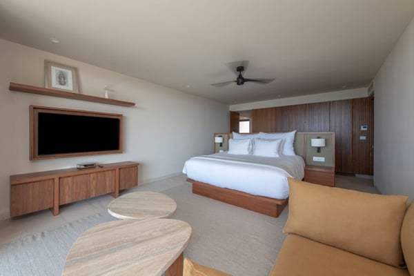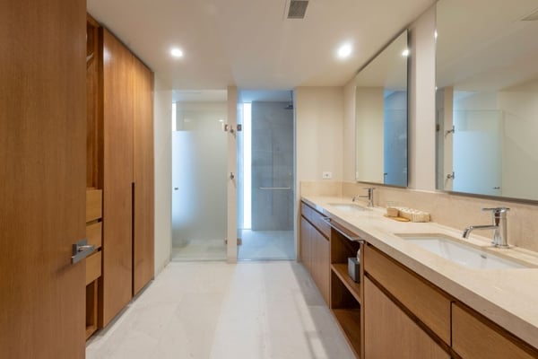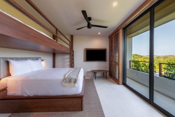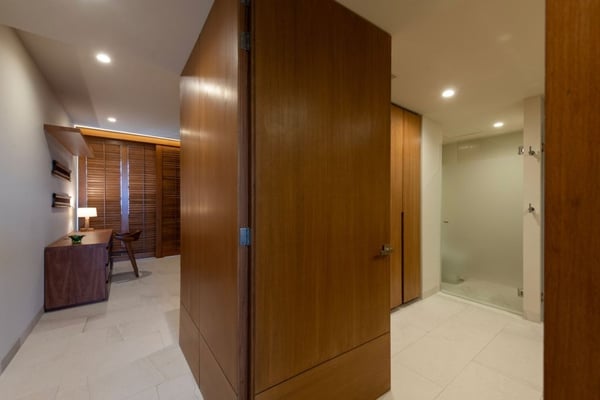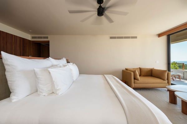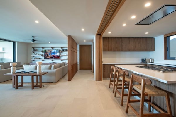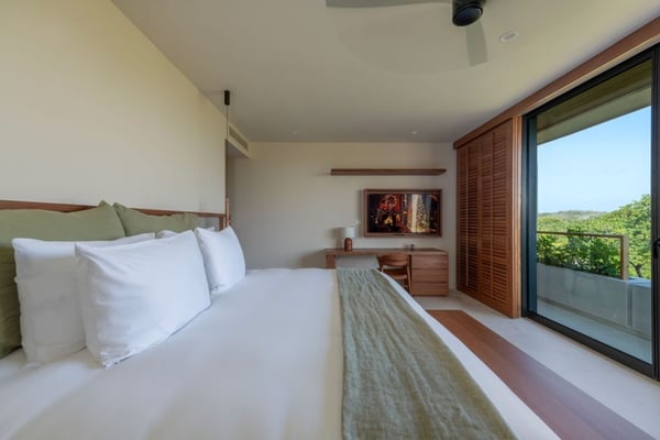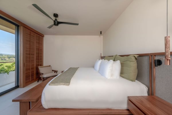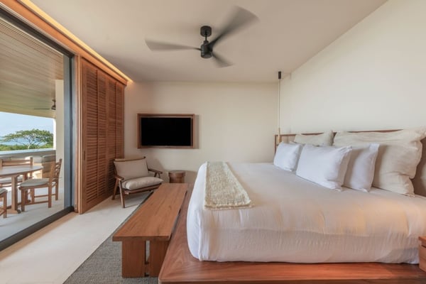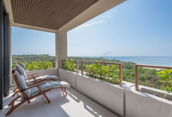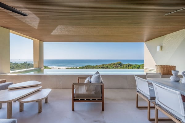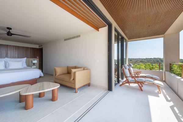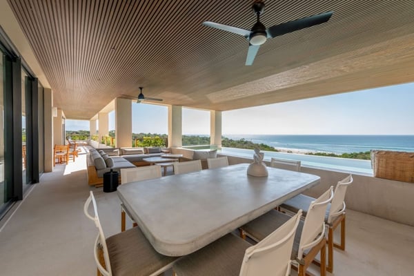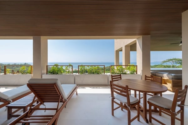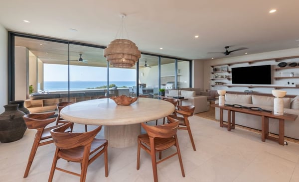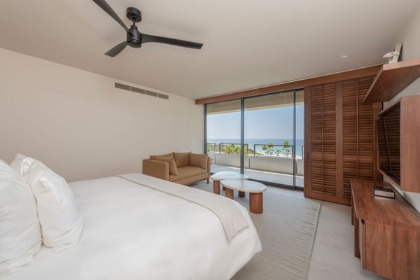 The Premier Golf Membership grants access to Pacifico Golf Course ($), Bahia Golf Course ($), the Tennis Centre ($), the Fitness Center ($), El Surf Club based on min. consumption fee ($), St.Regis Beach Club based on availability and min. consumption fee ($), Pacifico Beach Club, Sufí Ocean Club and Kupuri Beach Club. Contact one of our Villa Specialists for more information. Experience unparalleled luxury and stunning ocean vistas in this exquisite 4-bedroom condo at Surf Residences, Punta Mita. Designed on a single level, this property boasts expansive lounging areas and a sleek infinity-edge pool backdrop of the sea. The thoughtfully crafted outdoor spaces, shaded by elegant wooden pergolas, provide the perfect setting for entertaining or relaxing in style. Inside, the modern, airy interiors harmonize seamlessly with the lush surroundings, featuring floor-to-ceiling windows, an open-concept kitchen, and spa-inspired bathrooms.