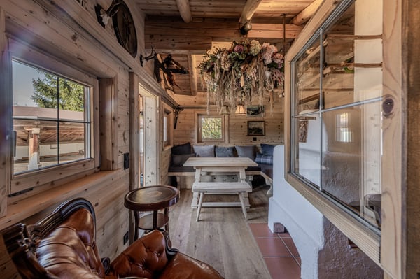 This amazing modern chalet is located in a very short drive from both the centre of Kitzbühel and the ski lifts, in a quiet, prestigious neighbourhood. The property combines modern furniture with the elements of the classic Tyrolean style. This chalet has two living spaces, one on the ground floor and one on the first floor. Even large families will find enough space here. In addition to this, the chalet has a cozy TV room with a piano, sauna, steam room, and amazing terraces with stunning mountain views and comfortable outdoor furniture. Next to the chalet, there is a small classic Tyrolian hut placed there just for fun. To add rural vibes to the property.
