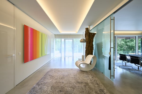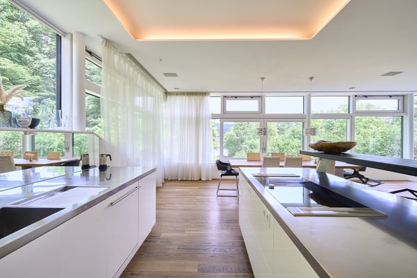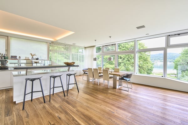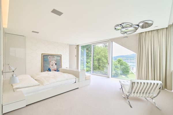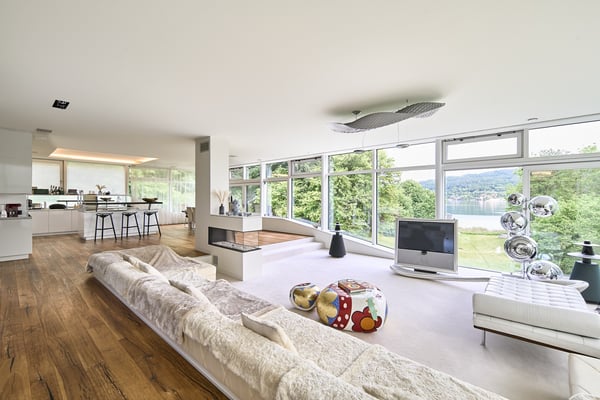 This unique designer villa is idyllically nestled in a picturesque natural landscape on the sunny southern shore of Lake Wörthersee. The total size of this property is approximately 4950 m²/ 53280 ft² and is particularly impressive due to its absolutely peaceful natural location with magnificent views of the turquoise-blue Wörthersee. The optimally thought-out room concept with a living area of approx. 590 m²/6350 ft² of living space is spread over four floors and offers enough space for four bedrooms, three bathrooms, an office and a sensational open living area with a kitchen that extends over the entire first floor. Generous glass surfaces allow plenty of daylight to flow into each and provide impressive views. The furnishings and interior are of extremely high quality and impress with clear lines and sophisticated technical details. Modern works of art that underline the special living ambience give the villa a unique touch. The spacious gardens impress with a magnificent variety of plants and ideal sunlight throughout the day. The absolute highlight is the exclusive lake access with bathing jetty and boat shelter. Directly on the shore, there is a small bathhouse with a kitchen, a toilet and a sun terrace. Here you can enjoy countless hours of sunshine with family and friends in one of the most beautiful places on Lake Wörthersee. Parking for three large cars in a glass garage completes this high-quality property. To make sure you and your close ones will get the best holiday experience possible, our highly experienced chefs and butlers are at your disposal seven days a week. Our unique concierge service, which is simply the best in the area, will provide you with all the support you might need during your stay in Kitzbühel. Whether you need a chauffeur, a ski instructor, restaurant booking, or any other service, leave this to us and just enjoy your stay.
