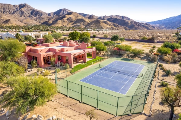 Spanning more than 12 beautifully landscaped acres and encircled by the most magnificent mountain views in the Coachella Valley, Silverstone Reserve is the largest and most scenic compound in Palm Springs! This secluded, completely gated luxury estate is less than 10 minutes from the vibrant heart of Downtown Palm Springs and lies between the famous Indian Canyons hiking trails and the nationally ranked Indian Canyons Golf Course. Silverstone Reserve is a testament to grand living. It features three distinct homes offering 11 bedrooms, a separate event space, a standalone game room, indoor & outdoor pools, a tennis court, multiple expansive lawns, its own pond and stream, and private hiking trails. Its blend of unmatched scale, bespoke style, and exclusive amenities offers everything your group needs for an unforgettable Palm Springs stay. The Hacienda is the property’s main house, and it was just renovated and redesigned. It spans over 12,700 square feet and boasts five bedrooms (three of which are suites), with the primary suite offering direct access to the home gym and a luxurious ensuite bathroom featuring both a sauna and spa, and leading to the indoor pool and hot tub. The Hacienda has numerous terraces, including an internal covered courtyard surrounding a large water feature, which offers private access to the two additional suites. It also features a grand foyer, a towering great room, multiple dining rooms, and a cinema room. The Tennis House (pink house) spans over 4,100 square feet and is bathed in natural light with tiled floors and wood-beamed ceilings. It offers three additional ensuite bedrooms and features a large living and dining room with dedicated bar space and, of course, its namesake private tennis court. The Casita lies at the edge of the Great Lawn (Great Lawn House) and gives your group even more room to spread out. It covers nearly 2,000 square feet and features three additional en-suite bedrooms, including a spacious suite. In addition to the three homes, there are a variety of additional unique spaces within this unrivaled compound: - The Pool Club features a large outdoor pool and spa as well as multiple covered structures for enjoyable lounging, including a bar, an outdoor kitchen, and dining area suitable for large groups, and an amphitheater-style fire pit. - The Game House (garages turned gaming rooms), completed in 2024, features approx. 3,000 square feet of colorful design and is packed wall to wall with games of all types, as well as a wet bar and large seating area for watching TV and movies in style. - The White Space (meeting/yoga space), also completed in 2024, boasts approx. 3,000 square feet is the perfect place for meetings, corporate retreats, yoga sessions, cocktail parties, or whatever your group dreams up! A 90-minute drive from LA, Palm Springs has earned its reputation as a long-time favorite desert destination. Attracting movie stars, such as Marilyn Monroe and Frank Sinatra, it boasts an old Hollywood history dating back to the 20s. Mid-century modern architecture adds to a nostalgic feel while trendy shopping, hip restaurants, and lively bars keep things modern. Hop from one renowned golf course & spa to the next, or explore the Coachella Valley desert by way of hiking, ATVs, or horseback. STR Permit No: 000766