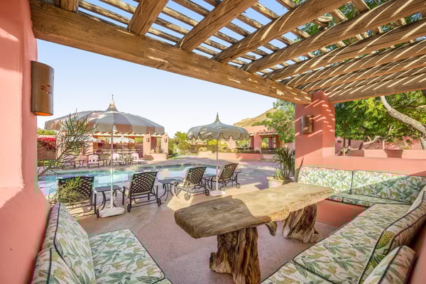• The rates for this property are dynamic and are constantly changing. The price listed above is only a starting rate and does not necessarily reflect the price for your travel dates. Please contact a Villa Specialist for exact pricing details. • This listing is made up of 3 houses located on the same property, all of which feature a kitchen. • Pool heat is a paid feature and must be requested 24-48 hours before the day of check-in. • During the summer months, desert temperatures are extremely high, which may cause the pool temperature to rise as well. Unfortunately, there is nothing we can do to control this. • This home has a max occupancy of 20. • Please note that you must be at least 21 years old to book this home. • Pets are not permitted at this property. Unauthorized pets may be subject to a fine. • This is a smoke-free home. Violation of the no-smoking policy will result in a $500 fee for additional cleaning and other related costs, in addition to the Guest being responsible for any damages attributable to smoking beyond said fee. • Please be considerate of your neighbors and mindful of noise levels. Noise violations may result in fines. • Please also note that we do not provide speakers or sound systems. • Parking is available in the driveway and garages. No street parking.