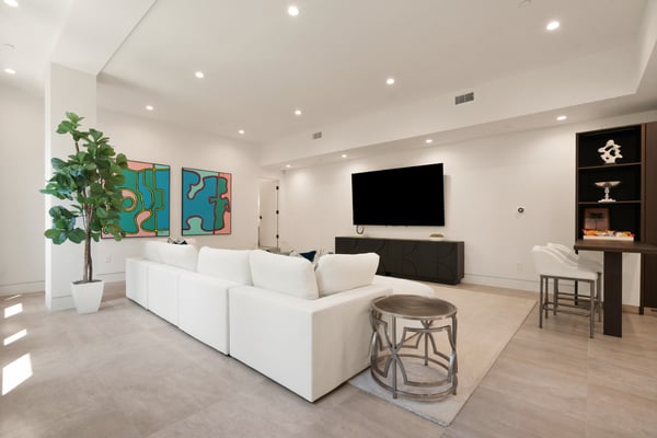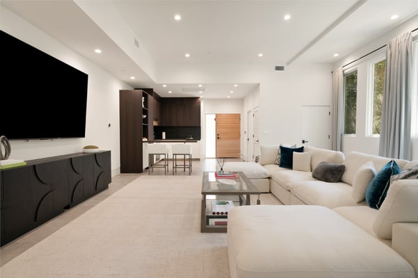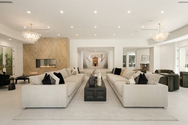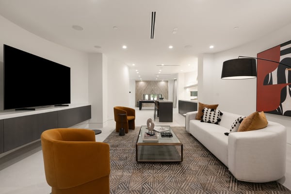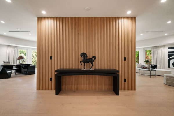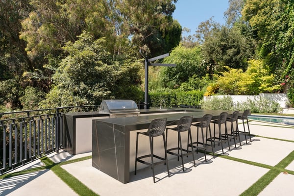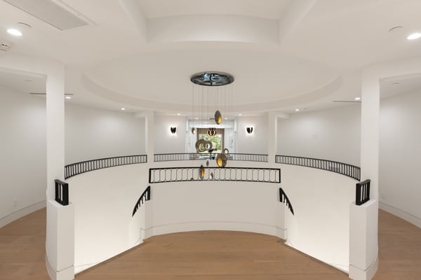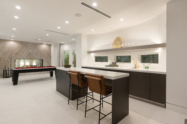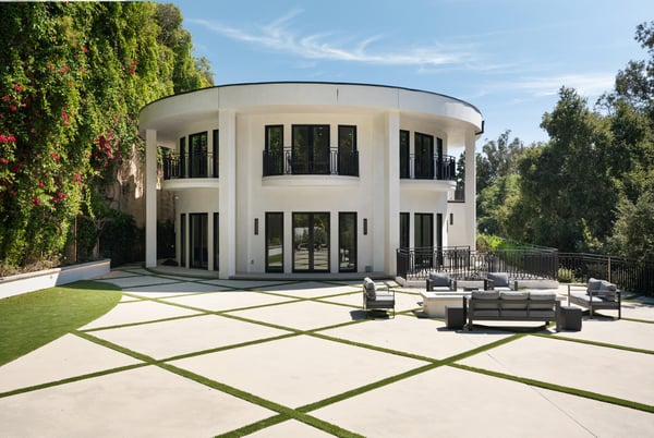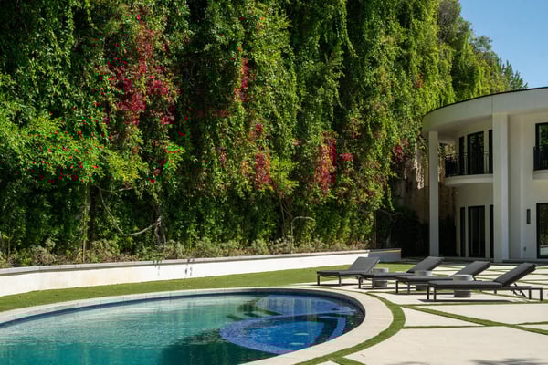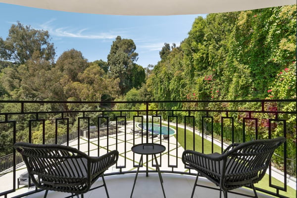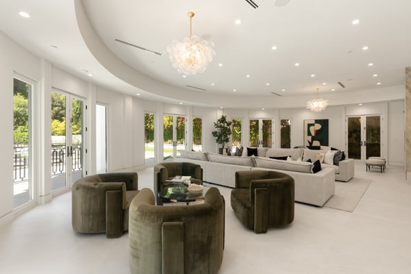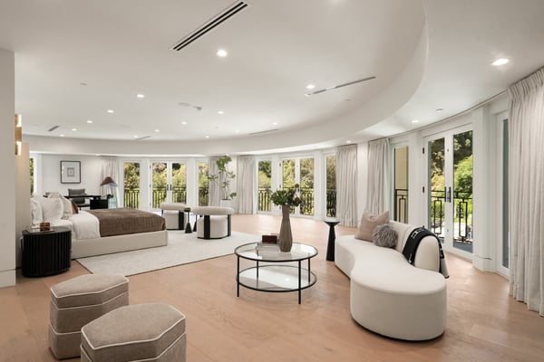 Located in the serene Lower Mandeville Canyon, the Noble Crest is a study in understated grandeur and meticulous craftsmanship. Set on nearly an acre of flat, private grounds, the residence blends timeless elegance with modern sophistication. The main house spans two stories, anchored by a dramatic double staircase in the grand entry, leading to expansive living spaces framed by curved walls and detailed finishes of granite, marble, and fine woodwork. The outdoor space evokes the charm of a European villa, with a manicured lawn, a pool with a waterfall, and a pavilion equipped with a BBQ and bar.