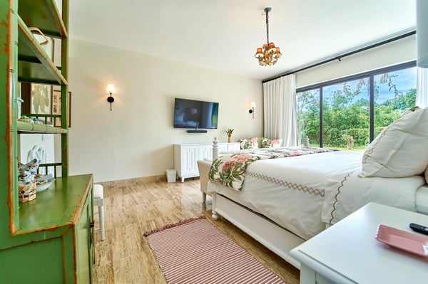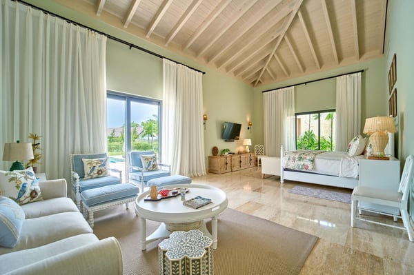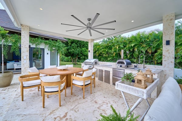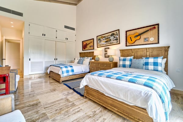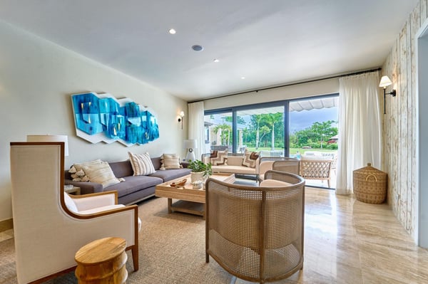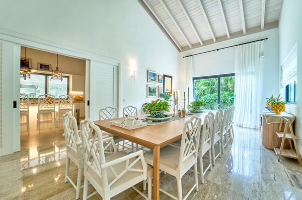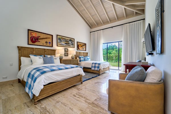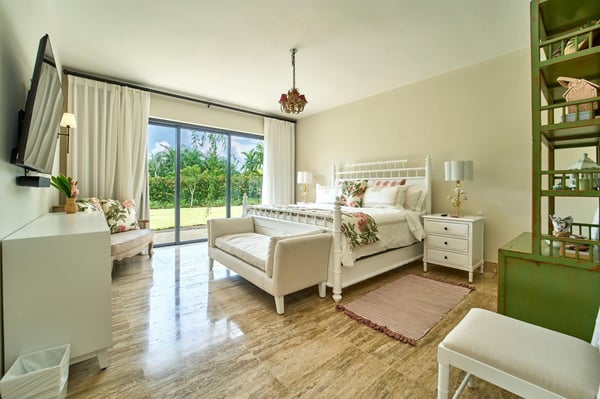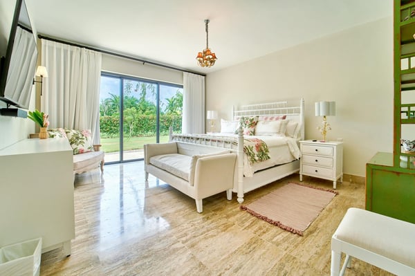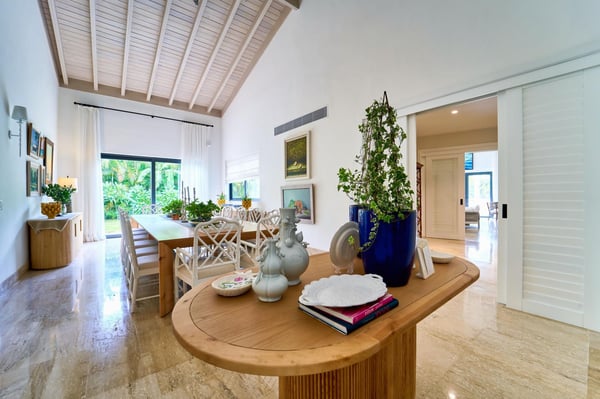All guests must register with the Casa de Campo Concierge offices, and for a small daily fee ($30 per adult per night & $15 per child per night), are granted access to resort areas and amenities. Casa de Campo Resort facilities and amenities include golf courses ($), the fitness centre ($), racquet center ($), restaurants ($) and bars ($). Contact Rental Escapes for more information about pricing. Welcome to Villa Kari, a stunning one-story contemporary residence designed for comfort, privacy, and modern elegance. With five spacious bedrooms (bed configuration: King, King, two Queen, two Queen, King), the villa offers a bright, breezy atmosphere and fresh décor that makes every space feel inviting and serene. Perfect for family vacations, the villa features a family/TV room with air conditioning, an independent dining room with air conditioning, and a spectacular outdoor gazebo equipped with a TV, BBQ, and pizza oven—ideal for entertaining. Surrounded by a very large, private garden, Villa Kari provides a peaceful retreat within the heart of Casa de Campo Resort. Its contemporary design, central air conditioning, and elegant finishes make it the perfect blend of luxury and relaxation.