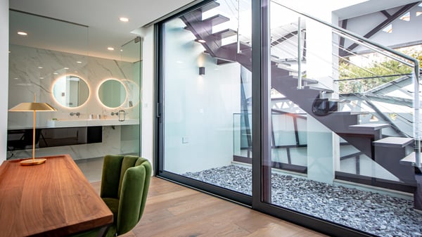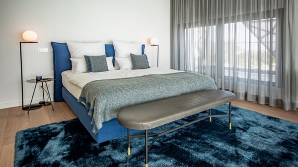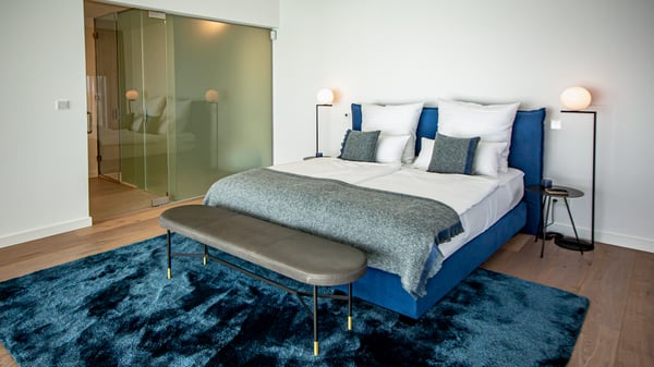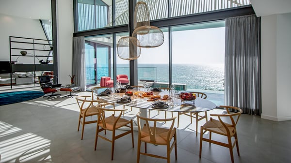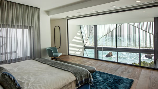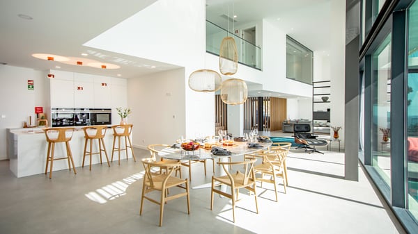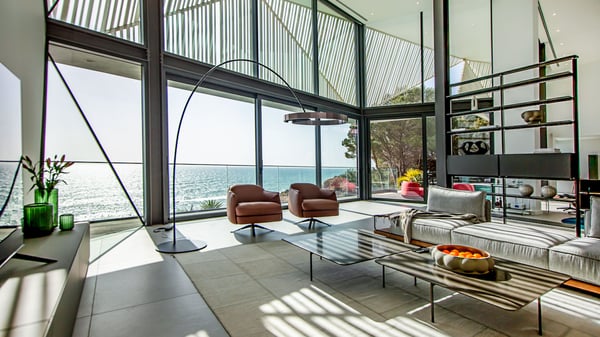 This luxury rental home in the Algarve is a true masterpiece of contemporary living in Portugal. Upon entering, the double-height living room and floor-to-ceiling windows offer uninterrupted views of the azure waters and colourful sunset skies, creating a striking first impression. The open-plan living room seamlessly transitions to the swimming pool, accompanied by endless sea views, creating an indoor-outdoor living experience that sings to the tune of tranquillity and relaxation. Sophistication and a sleek modern atmosphere permeate every aspect of the interiors, combining ultra-trendy elements with iconic mid-century design pieces. The kitchen is fitted with state-of-the-art appliances, ensuring ease of use and functionality. For those looking to unwind, the luxury Algarve rental villa boasts a sauna and steam room perfect for a post-workout relaxation or indulgent pamper session. The villa's outdoor spaces are equally impressive, with multi-tiered pine gardens offering a serene retreat, and the pool providing a refreshing respite while enjoying the ocean views. In the evening, unwind in the rooftop lounge and soak in the Jacuzzi while stargazing. Truly, this home for rent in the Algarve is the perfect combination of contemporary luxury and natural beauty, offering an unforgettable holiday experience.