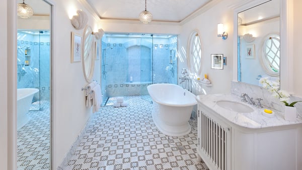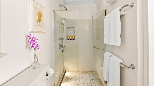 | Bathroom 9 | South | full | Toilet, Shower | Pavilion South | En-suite. Italian mosaic shower. Single vanity. |