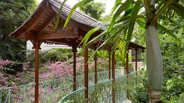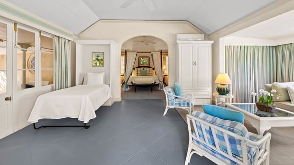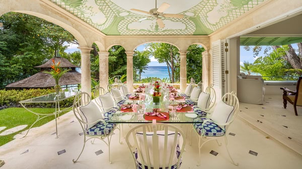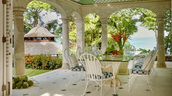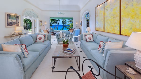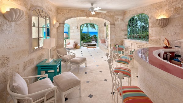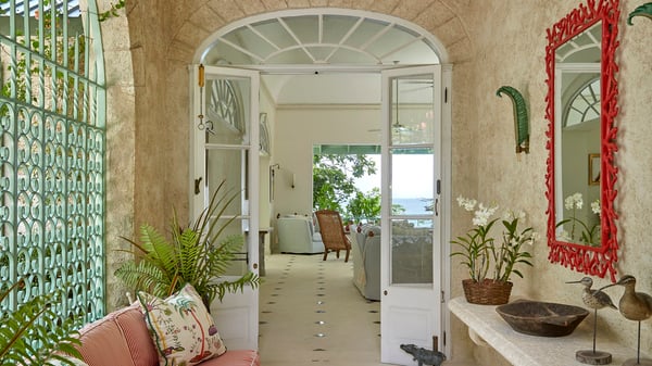 Construction is taking place nearby and may create some noise issues. Contact a Rental Escapes villa specialist for more information about how this may impact your stay. Crystal Springs is an enchanting beachfront villa set on 1.7 acres on Barbados' West Coast. The 12,000 square foot residence, with a staff of 14, comprises six beautiful buildings connected by coral stone terraces, pathways and a bridge. There are a multitude of living spaces, three alfresco dining areas and 10 guest rooms, each featuring an en suite bathroom, luxurious amenities and accommodating layouts, making Crystal Springs an ideal villa for large groups or families looking for an intimate holiday retreat. Created by legendary designer Oliver Messel in the 1960's and completely restored in 2014, Crystal Springs' elegant facade, stylish decor and breathtaking views provide a magical, theatrical ambiance, yet the impressive villa innately feels like a welcoming home where ultimate relaxation awaits. The villa's amenities are exquisitely designed to provide an unforgettable experience, including a stunning infinity swimming pool looking onto the Caribbean Sea, a secluded cove beach ideal for sunbathing, swimming and snorkeling, an 18 foot speedboat with a professional boat master, a state-of-the-art cinema and a high-tech fitness centre. In addition, a Sunfish sailboat, paddle boards plus an array of water sport equipment are readily on hand. Enhancing the magic of Crystal Springs' divine setting and amenities, its dedicated staff of 14 provides the consummate service, allowing you to enjoy gourmet dining, five-star concierge planning and personalized yet unobtrusive pampering that ensures your stay is nothing short of exceptional, and one you'll wish to return to again and again.