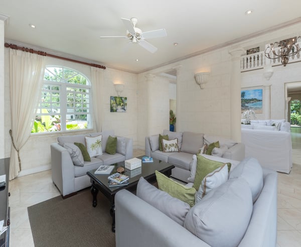 Guests staying within the world-famous Sandy Lane Estate will have complimentary access to all Clubhouse facilities including beach chairs, umbrellas and tennis courts. Nestled in the exclusive Sandy Lane Estate, Saramanda is a distinguished five-bedroom, five-bathroom villa that embodies classic Caribbean sophistication. Just five minutes from vibrant Holetown, this impeccably maintained home offers the perfect blend of privacy, comfort, and upscale island living. Set amidst beautifully landscaped gardens, the villa features a private swimming pool surrounded by tropical flora and serene outdoor lounging areas. Spacious indoor and outdoor living spaces are designed for seamless entertaining and quiet relaxation alike, enhanced by elegant décor and ceiling fans throughout. Each of the five air-conditioned en-suite bedrooms offers a peaceful retreat, while a laid-back media room, flat-screen TVs, cable, and DVD/video options provide all the entertainment comforts of home. Dedicated staff ensures a truly effortless stay, including a cook, housekeeper, and laundress, with a butler available during the festive season. The team is also happy to organise grocery purchases (fee applies), so you can spend more time enjoying your vacation. As a guest of Saramanda, you’ll enjoy exclusive membership to the Sandy Lane Beach Club, granting access to one of the island’s most prestigious private beachfronts. High-speed Wi-Fi, hair dryers, ceiling fans in all rooms, and a security alarm system round out the villa’s thoughtful amenities. From golf outings to poolside cocktails, Saramanda invites you to unwind in true Barbadian luxury, where every detail is handled, and every moment is yours.