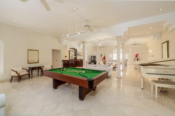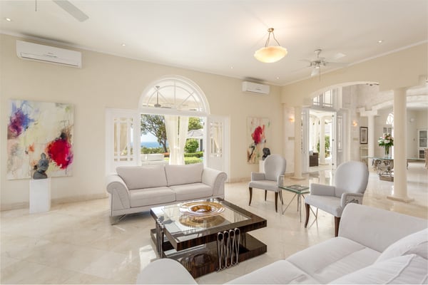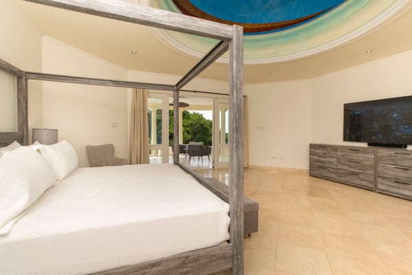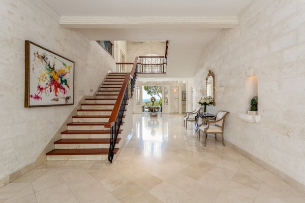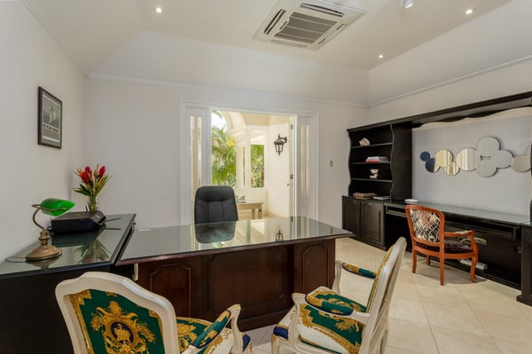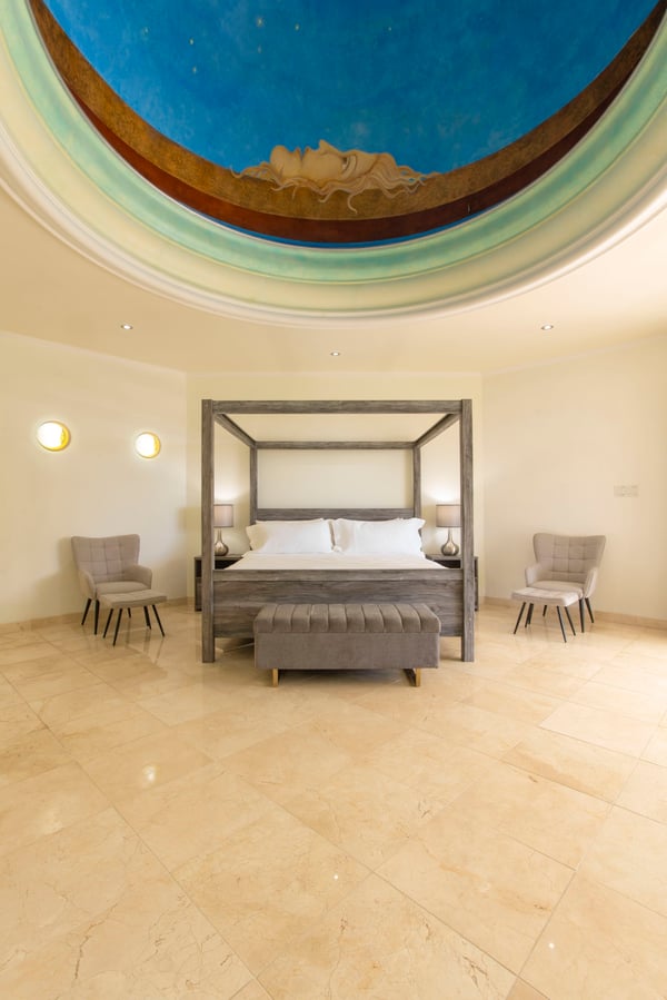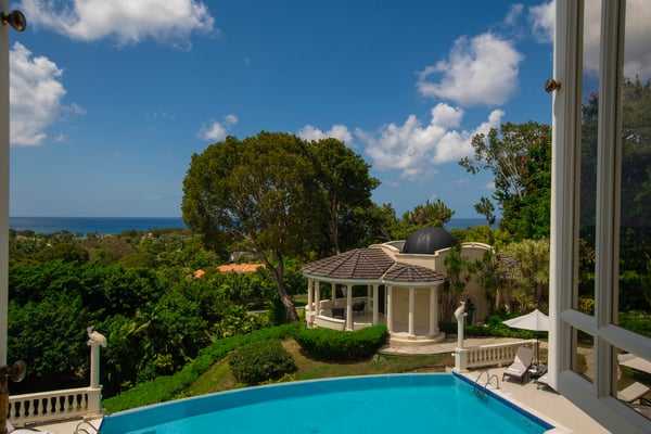 Guests staying within the world-famous Sandy Lane Estate will have complimentary access to all Clubhouse facilities including beach chairs, umbrellas and tennis courts. Paradise is more than a place. It’s a state of mind. At Bohemia, both are achieved with unparalleled luxury and service in the heart of The Sandy Lane Estates. A chic villa with the most exclusive ocean view on the island, Bohemia stands the test of time as one of the most prestigious homes on the coveted West Coast of the island. Two acres of meticulously maintained grounds provide a lush tropical garden oasis where Green Monkeys are avid visitors. The infinity pool surrounded by the sounds of exotic birds and towering palm trees welcomes an early morning yoga class. Sunset hour on the boundless terrace is a hypnotising, almost heavenly experience where you can bask in the gentle warmth of a late sun and indulge your favourite curated cocktail. This fabulous property is perfect for multi-generational families, or for entertaining large group of guests. The villa has an impressive 8 bed, 11 bath living space that spans over 11,000 square feet. It boasts 4 vast bedrooms upstairs, including twin luxurious 1,000 square foot master bedrooms with two large en-suites in each. The fifth bedroom is on the main floor with its own private patio facing the ocean, which captivates even the most seasoned of world travellers. The separate “Dome” cottage is a magical space that presents a painted night sky etched with moon and stars in the curved ceiling that transitions into the grand bedroom below. Large walk-in closets, marble floors, and a blissful rain shower accompany the unique and otherworldly décor of The Dome. This private, detached living space is an isolated enjoyment from the rest of Bohemia’s splendor, and is a rarity not found in other villas in the vicinity. In addition, two bedrooms perfect for staff, teenagers, or nannies are located by the pool garden. The open concept living room of the main villa allows for numerous pastimes ranging from films or sports games on the large flatscreen, billiards, coffee and tea in the sitting area, an afternoon cocktail at the wet bar, a turn on the grand piano, or the simple pleasure of delving into a favourite novel. The space is designed to keep everyone together, but not too together. We know the importance and value of spacious areas on vacation. You also have the choice of where to dine, be it outside on the terrace, inside the casual dining area for a buffet-style meal, or the formal dining room which offers a royal mahogany table capable of seating over 12 guests in a fully air-conditioned setting ideal for holidays or special occasions. Bohemia understands the importance of entertainment. There are five 75-inch smart TVs throughout the estate so everyone can watch their favourite show on Netflix and never miss football around playoff time. The latest Sonos system is ready to play your favourite music throughout the villa and onto the outside patio for your pool party. The estate has parking for 10 or more cars and is fully gated with a state-of-the-art security and CCTV camera system.