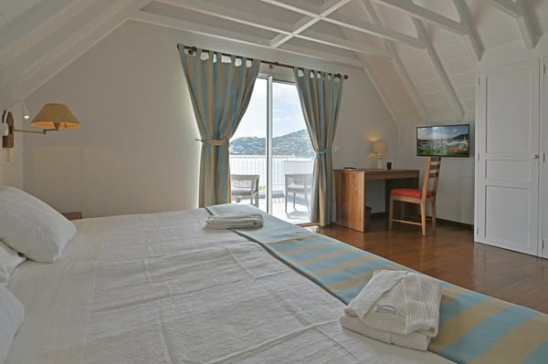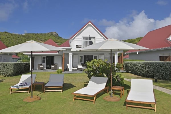 Val Andre house is ideally located at the end of the greatly prized Saint Jean beach in St Barth. The closest hotel in Saint Barth is the Emeraude Plage. This house in Saint Barth, exceptional thanks to its much-coveted location, has a wonderful view on the beach of Saint Jean and the ocean. The living room opens onto the terrace, the garden and the sea. The decoration is contemporary with a colonial touch. The lush garden is a real advantage. The property (the three villas) has a private and exclusive tennis court. This house, is perfect for holidays in St Barth for a family. Both of the bedrooms are under the same roof, connected to the living. The bedroom, on the first level is overlooking the sea and has a terrace. What we especially liked in this holiday house in St Barth are its situation within two minutes walking distance to Saint Jean beach, garden and view. Together with Dahouet (one bedroom), Cap Frehel (one bedroom), they make the property of: Les Sables d’Or (4 bedrooms).