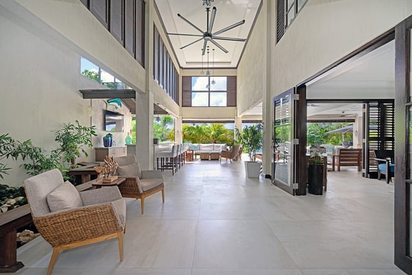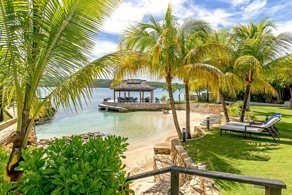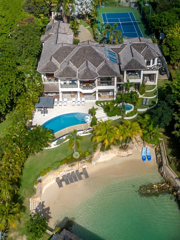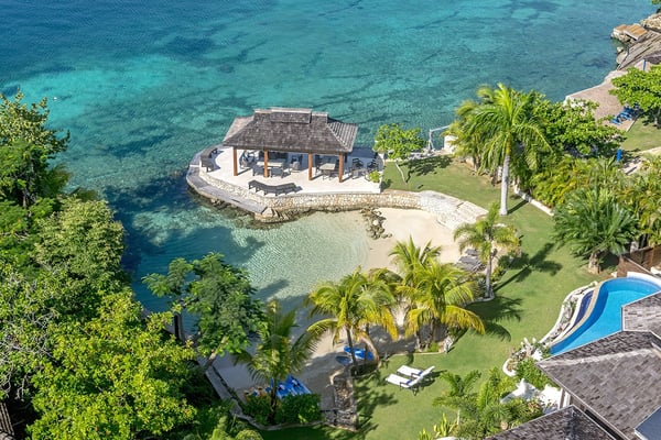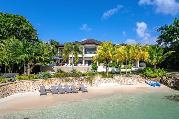 Makana is one of the most glamorous private villas on the precious strip of land that borders Discovery Bay. The site itself is remarkable: a spacious villa with a private tennis court and swimming pool on a sugary white sand beach bordering translucent swimming and kayaking water. Virtually a resort within itself, Makana also includes an air-conditioned gym and adjoining spa room. An over-the-water gazebo provides a 270-degree view of the mountains, bay, and Caribbean Sea and is a splendid venue for lovers of breathtaking sunsets. The interiors are stylish and comfortable. The Great Room opens to a spacious veranda and bar. Home-cooked meals are served on the alfresco dining terrace overlooking the lawn, garden, private pool, beach and blue bay. Child-friendly, Makana's design addresses the accommodation of family units. Excellent Jamaican nannies are available on request. The state-of-the-art kitchen includes a commercial oven, microwave, and gas grill. The talented Makana chef treats guests each week to barbecues of steaks, chicken, shrimp, pork, and lobster fired on the outdoor grill. Driving time from the Montego Bay airport to Makana is approximately 60 minutes. Discovery Bay is an incredible turquoise body of water that has attracted some of Jamaica's most visionary homeowners. Makana has raised the bar.
