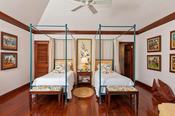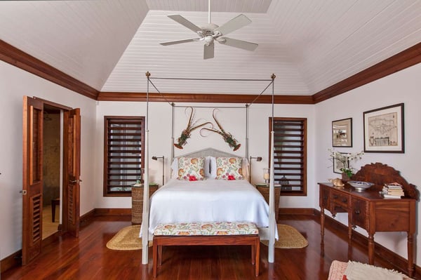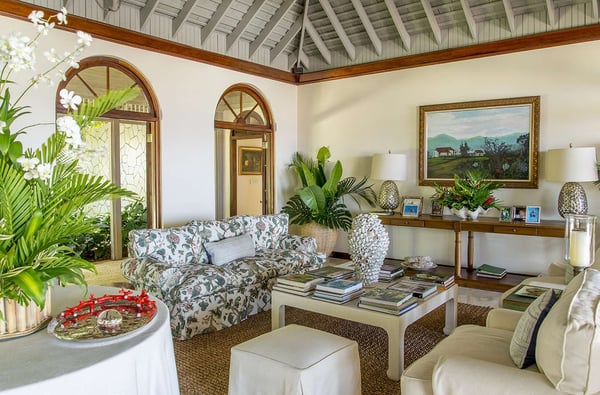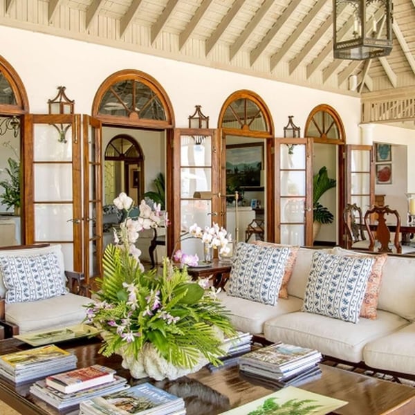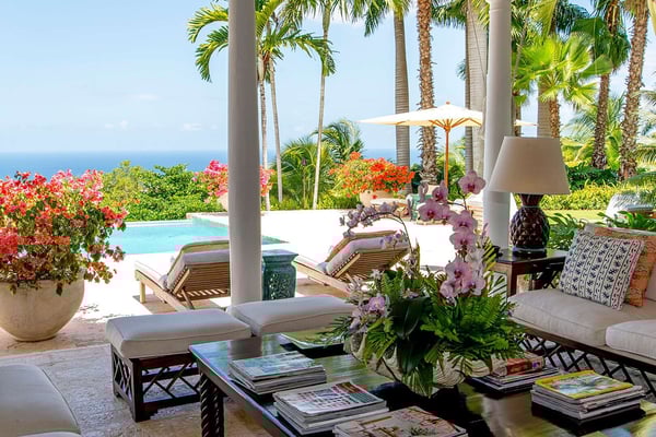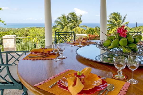 The Tryall Club requires all villa and condo guests to become members during their stay via a Temporary Membership Fee ($) (plus a 15% service charge). Children between the ages of 13 and 15 pay at a discounted rate (plus a 15% service charge). Guests can also pay per day, for guests ages 16 and older, who stay for one to four days. This can be either prepaid or upon arrival at the Club. For children 12 years of age and younger, our Temporary Memberships are complimentary. Please contact a Villa Specialist for exact pricing! There are stunning views—and then there are the views from Point of View. With a breathtaking ocean panorama stretching from west to east and rolling forested hills to the south, the scenery is mesmerizing. Perched atop Barnes Hill, Point of View offers ultimate privacy, seamlessly blending Jamaica’s natural beauty with exquisite craftsmanship. From its striking architecture and hand-polished mahogany to lush tropical gardens bursting with color, this villa truly celebrates the island’s charm. This single-level retreat features five luxurious bedrooms, four with king beds and one with twins, all opening onto an expansive covered veranda. Each room boasts a private en-suite bathroom with high-end Waterworks fixtures. The primary suite is made for relaxation, offering both outdoor and indoor showers as well as a freestanding porcelain tub positioned before a retractable wall, unveiling the valley below—bathing will never be the same again. Outdoor living takes center stage at Point of View. The sweeping veranda, infinity pool, and manicured lawns create the perfect setting for soaking in the scenery. For quiet moments, the indoor sitting room offers plush sofas, shelves lined with books, and an inviting ambiance. Unique touches abound—a gazebo with a cantilevered dining table, a tranquil kitchen garden and apiary, and birdcages nestled among flower beds. Whether watching the mist rise at dawn, toasting the sunset at dusk, or gathering around the fire pit beneath a starlit sky, every moment here is magical.