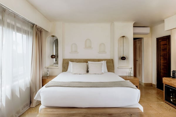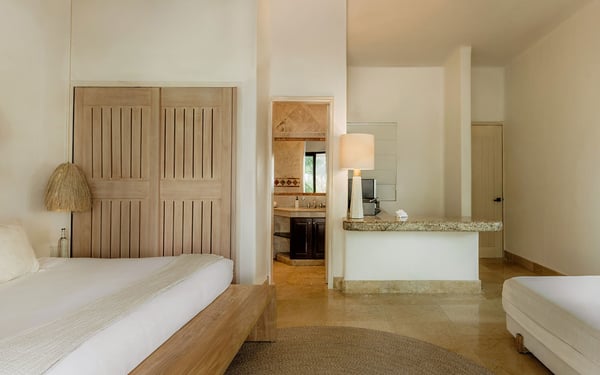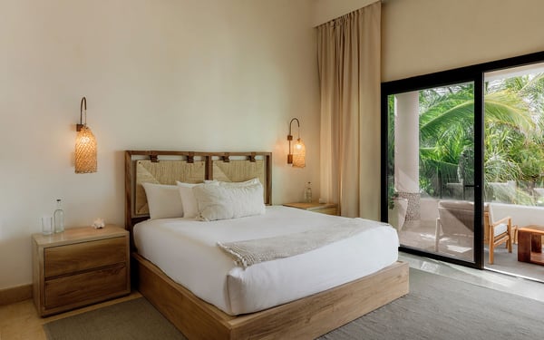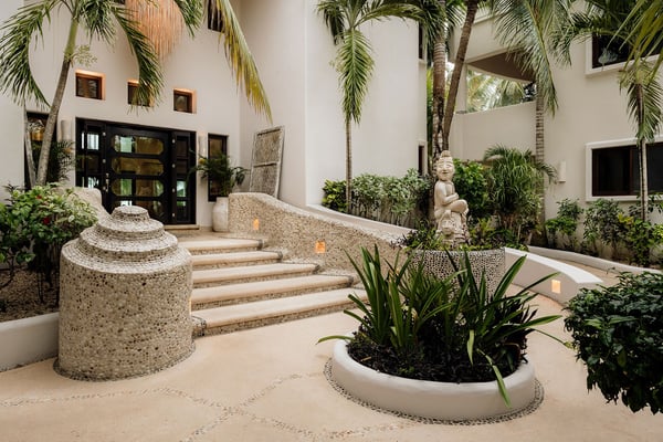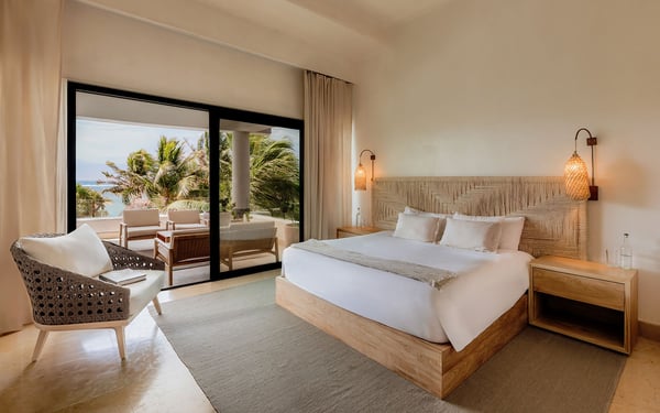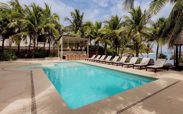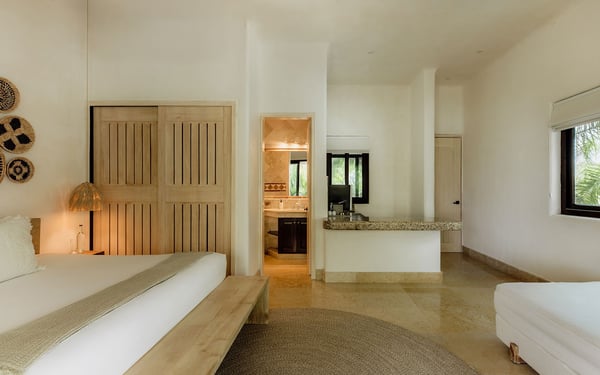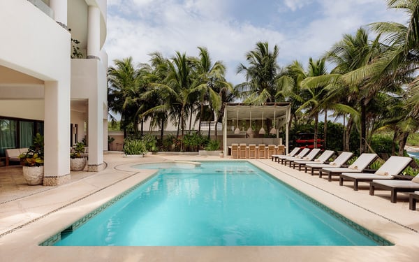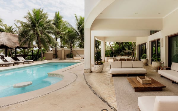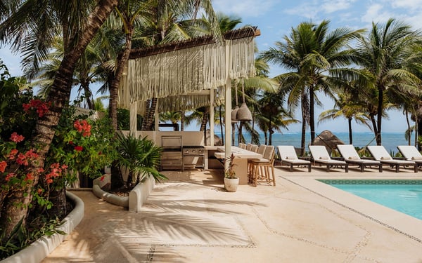 Internet service is a 3rd party service and cannot be guaranteed Nearby construction may result in noise disturbances. For further details on how this might affect your stay, please reach out to a villa specialist. Cenote Del Mar is a beachfront villa on Tankah Bay, Tulum, with 8 bedrooms spread across 8,600 square feet. There are six double suites in the main villa and two, four-person apartments in the villa’s charming guest house. Nestled on a completely private Caribbean beachfront, this state-of-the-art villa provides a 5-star resort feeling all to yourself. Its interior decor is elegant and sophisticated, with a wellness core inspired by Tulum’s Mayan heritage. Bedrooms feature plush Hypnos mattresses, top-of-the-line Dyson and GHD styling products as well as luxurious furnishings and interior design that exudes modern Tulum style. Whether you’re looking for a place to relax or a space to entertain guests, this beachfront villa has everything you need to enjoy the ultimate in luxury living. Cenote Del Mar is fully staffed with a world-class team of housekeepers, its own VIP concierge and guest happiness team and esteemed in-house chefs. Cenote Del Mar aims to provide a five-star resort feeling from a private vacation villa: for this reason, the villa is not available for self-catering as it is equipped with a professional kitchen. World-class food will be created bespoke to your parties dietary, taste and time requirements. From fresh acai and smoothie bowls to traditional American breakfast, truffle pasta, fresh sushi and modern-Mexican cuisine – we pride ourselves on offering a vacation for your taste buds whatever your request.