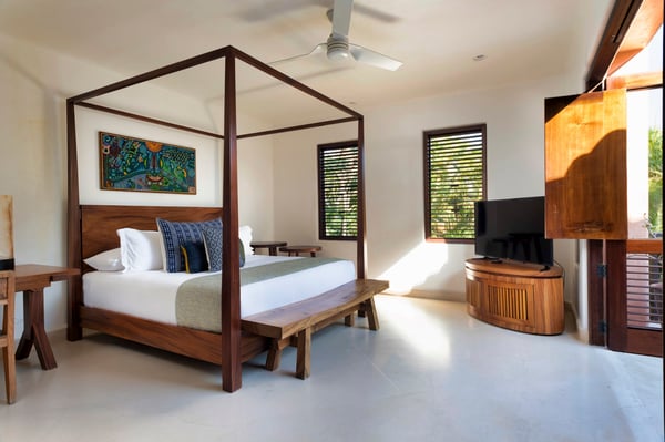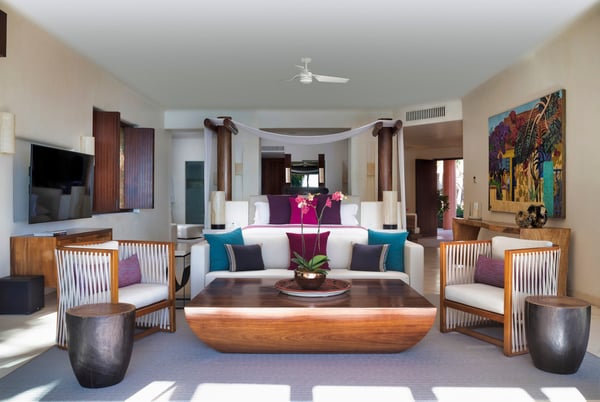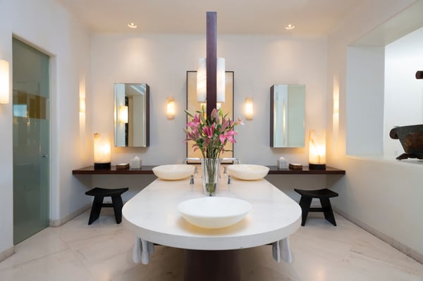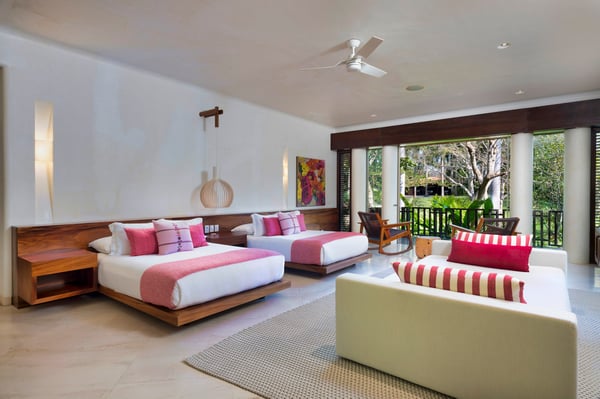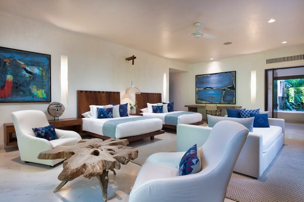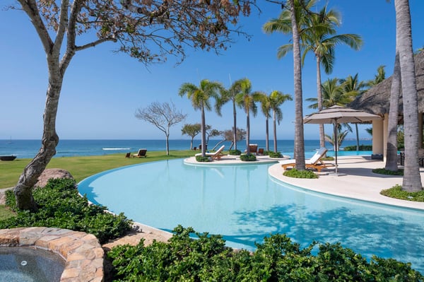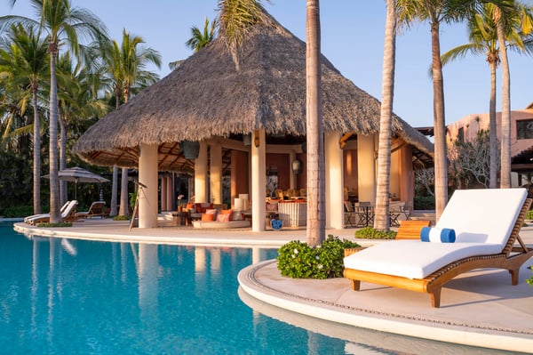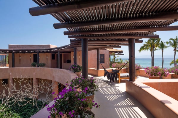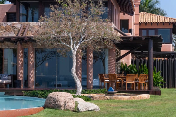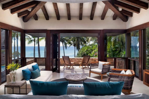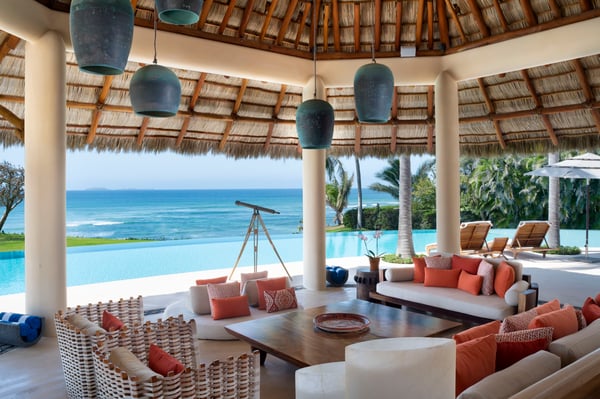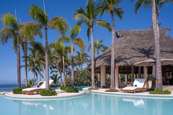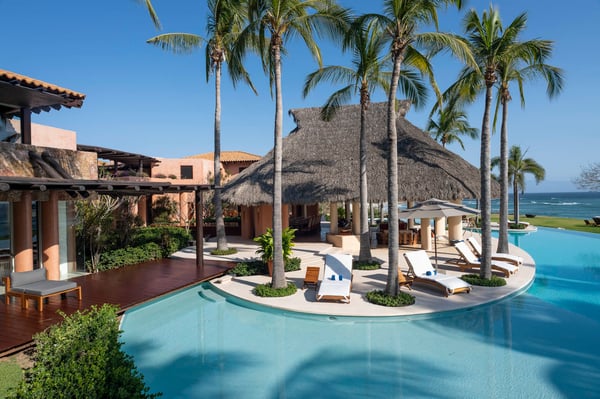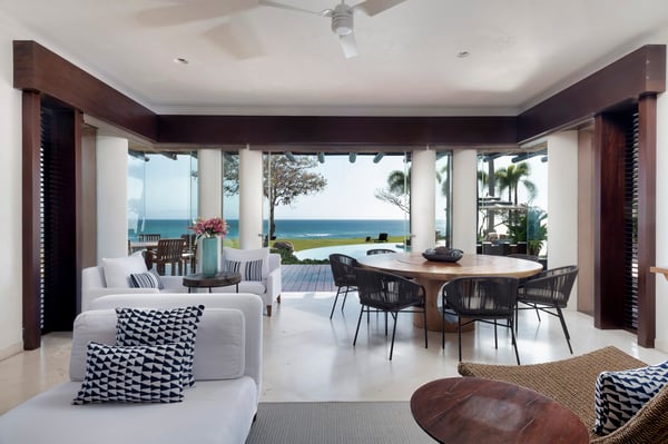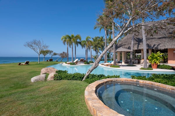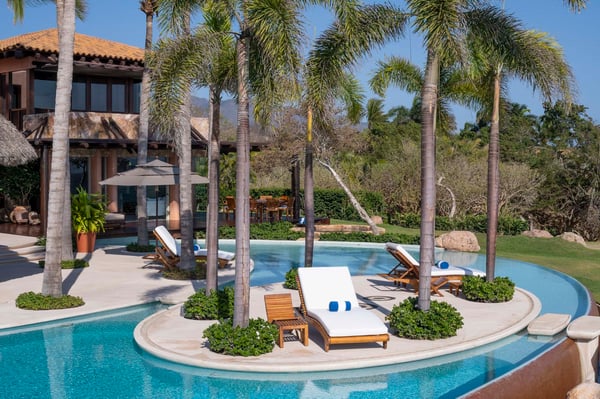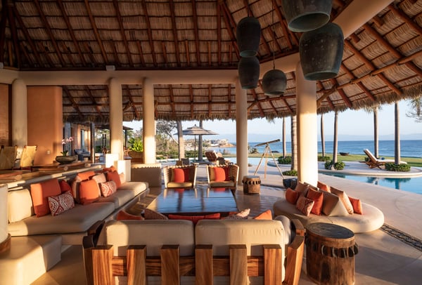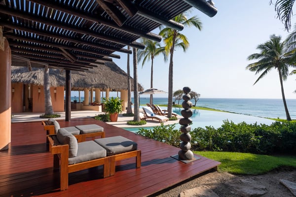 The wide-open floor plan of Casa Tres Soles provides luxurious living. 20,000 square feet of tropical scenery and the playful grounds of the pool are invited into the living/dining areas of the traditional interior residence. Become immersed in the immense lounging and dining space under the villas’s open-air palapa. Private terraces open to social areas of the home on the ground level. The sala connects with a large outdoor dining table overlooking the Bay. Private guest quarters lie just within reach of a tranquil courtyard. Under the cool shade of the Palapa, fall into deep, plush couches. Be cooled by the Bay of Banderas’ soothing breeze. Enjoy some après-pool time lounging under the Palapa… accompanied by homemade tortillas and guacamole, freshly mixed ceviche, fragrant fruits and craft cocktails. And, for dinner, expect the best! An experienced and attentive staff has been selectively gathered and trained; their effort and customs are built on tradition and ingenuity. The eighteen-seat table is flanked by giant pillar candles and allows for unobstructed sunsets. The food, impeccable. It stimulates your senses. The freshness and quality of the food – refreshing. And, the signature cocktails – divine.