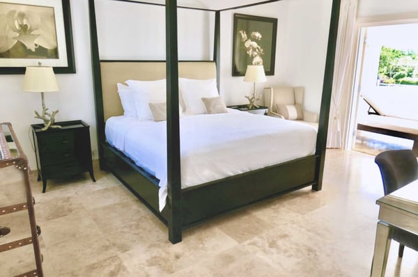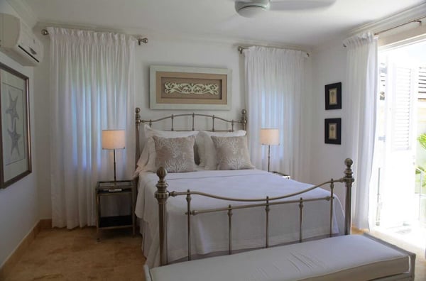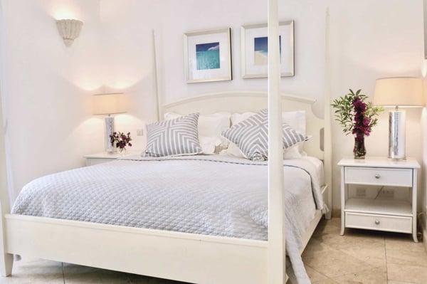 Royal Westmoreland is one of the Caribbean's finest luxury golf communities. With the $20 per person per day fee, guests will have access to the gym ($), golf course ($), tennis courts ($), Club House ($), beach facilities at Mullins Beach Club ($), resort communal pool ($). Lelant is a stunning, contemporary villa located adjacent to the 16th fairway of the Royal Westmoreland Golf Resort in Barbados. Located on a ridge that benefits from the breeze and expansive views of the Caribbean Sea, this luxury holiday villa is perfect for your golf vacation and features 4 tastefully decorated bedrooms, all air-conditioned and with en suite bathrooms. The spacious living rooms are well-decorated in neutral colours and open onto the expansive terrace. The modern kitchen is any chef’s delight and opens directly onto a covered terrace for al fresco dining. There is also a large fully air-conditioned media/games room with Sky TV and lots of books, puzzles and games for our guests to enjoy. The first floor of Lelant is the exclusive preserve of the luxurious master bedroom, complete with a stunning en-suite bathroom and dressing area. Both the bedroom and bathroom open onto the covered balcony where guests can relax and watch the action on the fairway, or just enjoy the views of the Caribbean Sea.