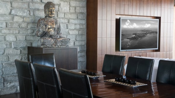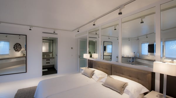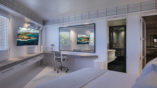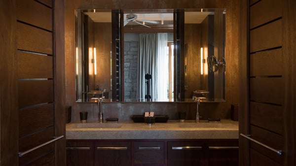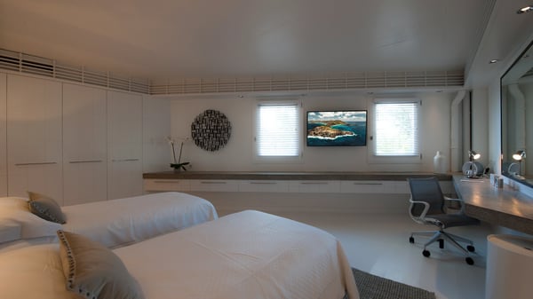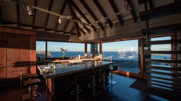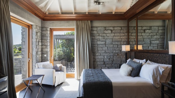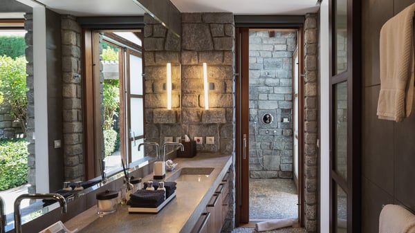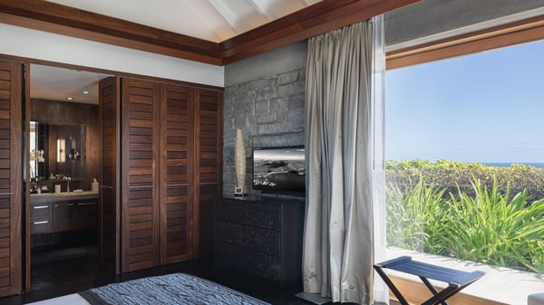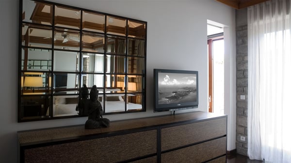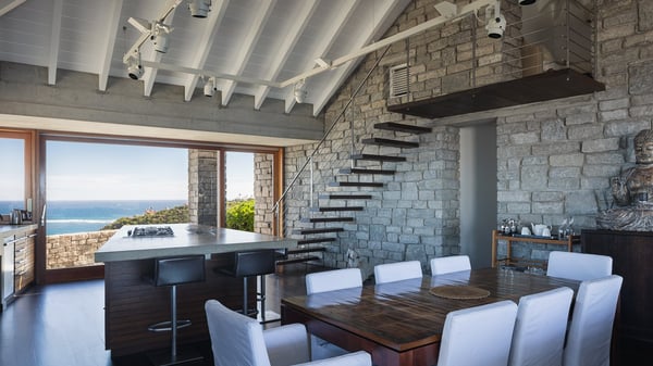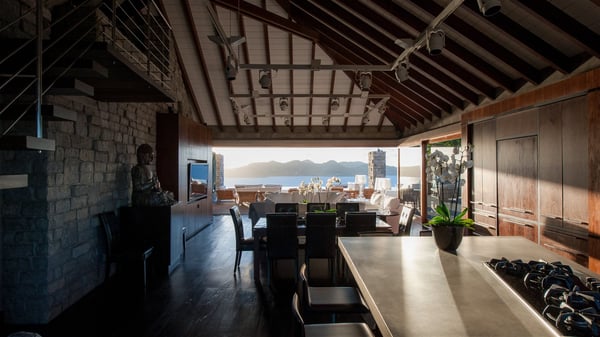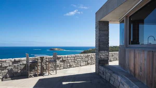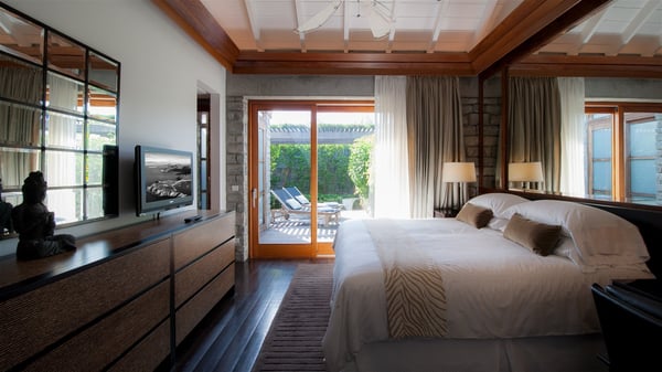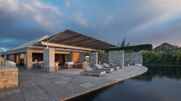 Located in the private domain of Pointe-Milou, the luxurious villa La Danse Des Etoiles faces a spectacular view over the bay of Lorient and the neighbouring island's Turtle and Frégate. The house is a true architectural art influenced by the American Arts & Crafts movement. It was built on two levels facing the panoramic view. Thanks to an east to west exposure, guests enjoy some of the most beautiful sunsets in St. Barths in the evening. Villa La Danse Des Etoiles is composed of a large living room with stones, parquet and woodwork under a beautiful mansard ceiling. Decoration and furnishing are most luxurious and beautiful: there are soft sofas covered with cream-coloured cushions in a cozy atmosphere brought by comfortable fabrics and contemporary lighting. The large windows let the light and sea breeze come into the large living space. The well-equipped and modern kitchen opens onto the indoor dining room with brown and black tones creating a pleasant contrast with the striking brightness of the stone walls. Outside, the magical view is stunning all day long. As soon as the sun rises behind Turtle Island, guests can admire the sun's path over the long, heated infinity swimming pool, and marvel at the fantastic sunset panorama in the evening. It’s the very best place to relax while sipping a drink, or enjoy an alfresco meal under the stars around the large dining table. The glowing sun rays light the covered terrace furnished with deckchairs set up near the superb swimming pool perfect for pleasant swimming sessions (more than 20 meters). The luxurious villa Danse Des Etoiles is composed of five large bedrooms, three of which are located on the living room and pool level, and two on the lower floor, which is furnished as a contemporary loft. All feature king-size beds and en-suite bathrooms. The villa also has a fitness room, an air-conditioned massage room and an outdoor pool table. Ideal for a stay with family or friends, this beautiful vacation rental in St. Barths is a very private home providing utmost comfort and ultimate luxury.