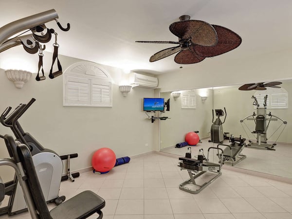 Guests staying within the world-famous Sandy Lane Estate will have complimentary access to all Clubhouse facilities including beach chairs, umbrellas and tennis courts. Discover this stunning tropical villa featuring 9 en-suite bedrooms that accommodate up to 18 guests, making it perfect for unforgettable family getaways. Nestled on the Sandy Lane Estate’s elevated grounds, this property operates like a high-end boutique hotel, ensuring exceptional standards throughout your stay. Each bedroom is equipped with air conditioning, ceiling fans, en-suite bathrooms, walk-in wardrobes, and flat-screen TVs. The design features an elegant English Baroque style—rich drapery and intricate rugs paired with exquisite mahogany and oak furniture. The upper level features exquisitely designed bedrooms, each showcasing breathtaking views of the meticulously landscaped grounds. The “Bajan Suite,” also known as the Master Suite, offers a private terrace that overlooks a stunning garden and swimming pool. Elegantly furnished with a beautiful 4-poster king size bed and exquisite mahogany armoires, it exudes classic Caribbean charm. Meanwhile, the Ocean Suite and Monkey Suites are perfect for families; they include two twin beds adorned in crisp white linens and playful decor inspired by their names—such as monkey lamps and tropical fish accents. The lower-level suites showcase luxurious furnishings, featuring light, crisp fabrics alongside striking antique accents that evoke a grand yet understated elegance. Among these, the Garden Suite stands out with direct access to lush lawns and gardens through exquisite doors leading to an expansive poolside terrace. Each room radiates beauty, enhancing the exceptional charm of this remarkable villa. Beyond the stunning landscape, the villa's interiors boast their own allure. An entertainment room features a karaoke machine, jukebox, and well-stocked bar. It seamlessly connects to the terrace and garden. A media room invites relaxation with a giant screen opposite a cozy leather couch. For fun, there’s a games room with pool and table tennis tables, plus an in-house gym for fitness enthusiasts.