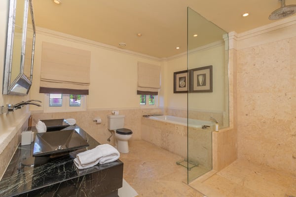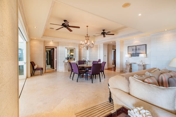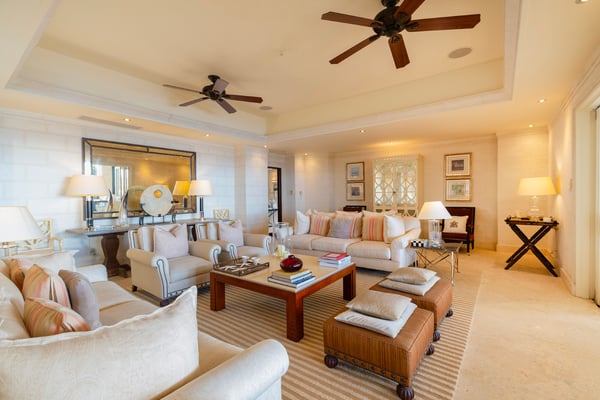Experience the ultimate luxury at Smugglers Cove Penthouse - an exclusive beachfront haven on Barbados' iconic West Coast. This top-floor, 4-bedroom apartment with a media room is your ticket to an unforgettable holiday in paradise. Indulge in over 6,000 square feet of sheer opulence, complete with breathtaking panoramic sea views. Immerse yourself in the grandeur of vaulted ceilings, exquisite marble floors, and state-of-the-art amenities. The modern kitchen and lavish bathrooms will leave you in awe. With four generously sized air-conditioned bedrooms, accommodating up to eight guests, your comfort is paramount. Three bedrooms feature king-size beds, while the fourth offers the flexibility of two twin beds or a King. Each bedroom boasts a private en-suite bathroom with a shower, and three even include a luxurious bathtub. There is also a well-equipped media room with a pull-out sofa just off the living area that can be accommodated for an additional charge. But that's not all - step onto the expansive 60-foot terrace adorned with stylish Italian loungers and a private Jacuzzi pool. Feel the gentle ocean breeze as you soak up the sun and revel in pure bliss. Located on the pristine shores of Paynes Bay Beach, you'll have direct access to one of the island's most coveted sandy stretches. Plus, with restaurants, nightlife, shops, spas, and golf just moments away, the Platinum Coast awaits your exploration. Unleash your inner luxury-seeker at Smugglers Cove Penthouse.