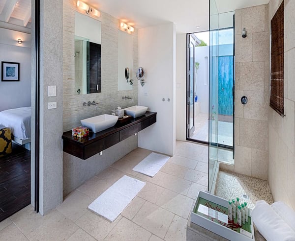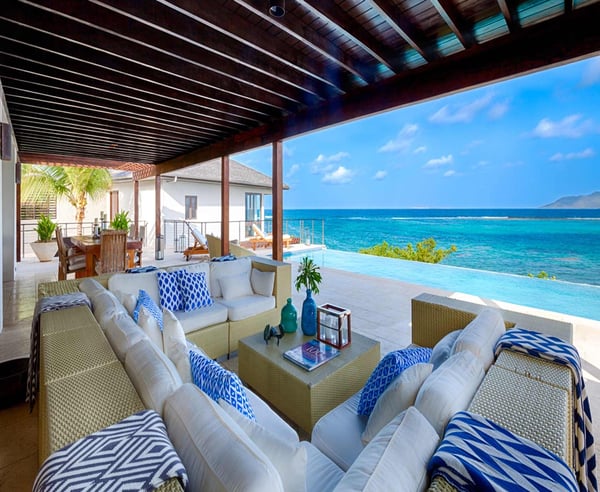 Villa Triton is located in a secluded cove on the south coast of Anguilla in Lockrum. It offers beautiful views of the Caribbean and is situated on a beach with calm waters, perfect for snorkeling due to the presence of a protective reef. This luxury villa in Anguilla blends classic Caribbean architecture with modern amenities and features spacious indoor and outdoor living areas adorned with natural materials. Additionally, there is an adjacent Pelican Villa on the property that you can also consider looking at. The expansive great room, which includes living and dining areas, seamlessly integrates with the outdoor terrace and infinity pool. The upper level boasts a modern kitchen, media room, and two master suites with private terraces and breathtaking ocean views. The lower level houses two additional master suites and two guest suites, all with en-suite bathrooms. Villa Triton is part of the exclusive Kamique Villas, which offers a range of personalized services, including gourmet dining, attentive staff, and a variety of activities. From watersports and outdoor adventures to spa treatments and childcare, every need is catered to. The dedicated concierge can arrange everything from tennis and golf to personalized experiences, ensuring an unforgettable stay. To make this happen, there's a private concierge, housekeeper, and property manager.