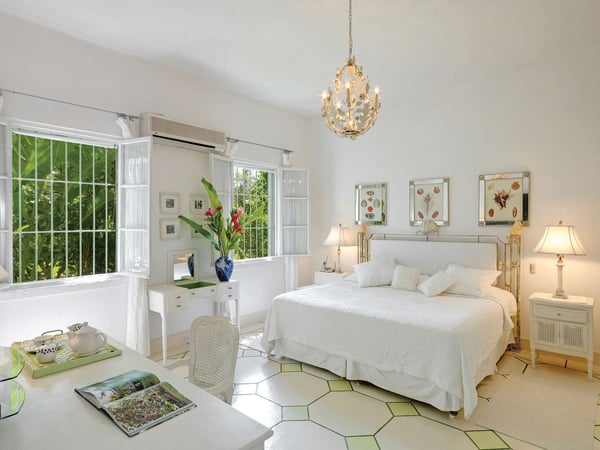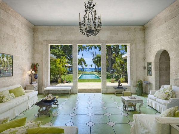 Please note the beach experiences seasonal fluctuations in its accessibility. Nelson Gay, a refined haven nestled on the periphery of Speightstown, Barbados, offers a sumptuous retreat spread across 1.5 acres of meticulously landscaped gardens and a breathtaking half-mile beachfront. Originally crafted as the prestigious abode of a United States Ambassador in the 1950s, this elegant coral stone mansion exudes timeless Palladian grandeur, boasting lofty 14-foot ceilings in its stately living room and a mesmerising 50-foot pool, artfully tiled with intricate Italian mosaics portraying graceful turtles and vibrant fish, positioned like a poetic pathway summoning the sea to its furthest end. This enchanting villa, designed with families in mind, offers an abundance of serene spaces and dining alcoves, including delightful options for al fresco dining under the shimmering glow of candlelight. Its predominantly white palette, gracefully adorned with unique antiques, harmonises seamlessly with the lush tropical landscape, creating an ambiance of refined sophistication and tranquility. Each of the sleeping quarters is a haven of comfort and serenity, featuring airy rooms furnished with plush beds and adorned with crisp, high-quality linens, ensuring a restful night's sleep amid the gentle whispers of the Caribbean breeze. Guests can indulge in moments of blissful relaxation by sipping cocktails by the sea in the elegant garden gazebo, complete with a convenient wet bar, or retreat to the secluded privacy of two covered terraces that overlook the pristine beach, offering captivating vistas of the azure waters beyond. Family-friendly amenities abound, including an invigorating open-air gym and a charming pickleball court, perfect for engaging in leisurely recreational activities with loved ones.