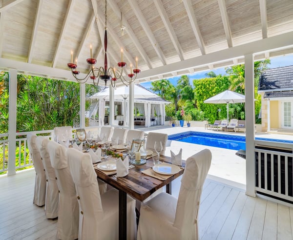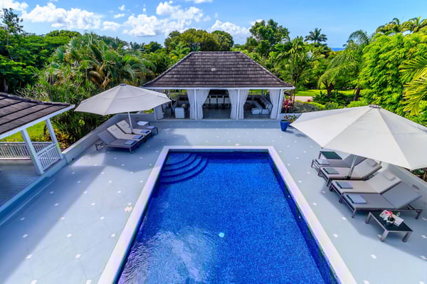 Tradewinds at Sandy Lane Estate is a striking five-bedroom mansion within the prestigious Sandy Lane Estate. Spacious, luxurious and private - an ideal getaway for friends or family. This property's pool area is truly the focal point, surrounded by the villa's ground floor, a charming pagoda, and a cosy dining pavilion. You can easily while away the hours swimming in the elegant pool, basking in the sun, unwinding in the pagoda, or indulging in delicious meals in the pavilion. Step inside the main house and you'll find a covered terrace leading to a formal living room that exudes elegance with its high ceilings, light colour scheme, and expansive wall opening up to the outdoors. It's a dreamy spot to relax and unwind in style. Prepare to be amazed by the chic and sophisticated design of this property, where every corner exudes elegance and charm. The kitchen, equipped with top-of-the-line appliances and sleek finishes, is a culinary enthusiast's dream. While guests may be tempted to try their hand at cooking up a storm, the villa offers the services of a skilled chef and efficient housekeeper to ensure a stress-free and luxurious stay. So sit back, relax, and let the professionals take care of all your needs while you bask in the lap of luxury. Step inside the indoor media room for some quality family time or just kick back and listen to your favourite tunes. And if you need a change of scenery, head to the private beach or hit the community tennis courts for a game or two. The five spacious bedrooms are tastefully decorated and offer plenty of privacy. Four are conveniently located on the ground floor with easy outdoor access, while the master bedroom encompasses the entire top floor with two balconies on each side. Each bedroom comes with a king bed and a lavish en suite bathroom featuring top-of-the-line fixtures and materials. Just minutes from beautiful West Coast beaches, guests of Tradewinds will have access to the Sandy Lane Estate Beach Club's private cabana, tennis courts and golf course. As well as access to watersports, storage, cabana fridge/freezer, drinks and food, guests have access to the villa's private golf cart which is available for the short ride down to the club. Also close by Sandy Lane Estate are waterfront restaurants, boutiques, duty-free shopping and beach bars.
