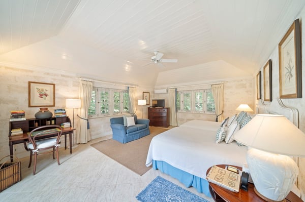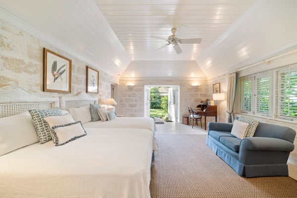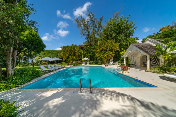 Guests staying within the world-famous Sandy Lane Estate will have complimentary access to all Clubhouse facilities including beach chairs, umbrellas and tennis courts. Heronetta offers a commanding beachfront location, offering four acres of mature tropical gardens directly on Sandy Lane Beach. This beautiful five-bedroom villa has a wonderful charm and uses its ideal location to create the perfect holiday setting. As you enter Heronetta's expansive grounds the beautiful mahogany tree-lined driveway leads you to the main house where you will be greeted by the highly trained staff ready to make your vacation that much better. The grounds are perfect for yoga and wellness retreats with ample room for up to thirty persons to enjoy and relax in this Zen tropical garden setting. The main house has a wonderful open area courtyard with a fishpond which is perfect for enjoying a morning coffee before heading to the outside dining room to enjoy breakfast prepared by your own private cook. Guests can also enjoy lounging in the open-plan living and formal dining area which has large sliding doors to allow cool breezes through and enjoy the views of the Caribbean Sea. Heronetta consists of five double, air-conditioned bedrooms with en-suite bathrooms. Two of the bedrooms are in the main house and the other three are positioned in the delightful self-contained cottages positioned within the gardens around the main house. All cottages and the main house have wireless internet in all rooms to ensure guests are always connected. This wonderful estate-style home also offers a private swimming pool, tennis court with lights for night tennis and a separate dining gazebo perfect for enjoying dinner alfresco. Heronetta has direct beach access and has its own private cabana on the Sandy Lane Property Owners Beach Club located just two minutes the Beach. You can also enjoy complimentary beach loungers and umbrellas as well as a fully stocked bar when at the Beach Club.