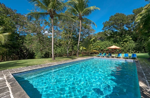 Guests staying within the world-famous Sandy Lane Estate will have complimentary access to all Clubhouse facilities including beach chairs, umbrellas and tennis courts. Evergreen is a private and secluded estate nestled in the heart of over two acres of rolling mature tropical gardens. Located on the exclusive Sandy Lane Estate on the beautiful West Coast of Barbados. This elegant rental villa is beautifully furnished with a unique mix of antiques and contemporary art pieces. Evergreen features four sprawling air-conditioned bedrooms, and five exquisitely designed bathrooms. Each bedroom has its own distinctive feeling with unique decorations and furnishings. One of the master bedrooms has an unrivaled view of the Estate gardens and two of the very gracious guest suites open onto the tropical gardens. Evergreen truly is a treasure and offers the unique quality of featuring more common areas than any other villa of that size, all designed to suit the guests every possible mood. From the more formal living room to the expansive patios, the brand new state of the art family room that can sit comfortably a house full of guests for a movie on the big screen TV, to the Puncherie on the roof terrace, aptly named to reflect its perfect position to enjoy the best rum punch on the Island, while watching the sun set over the Caribbean Sea, without forgetting the Mondrian inspired bar and dancing floor, guests will never want to leave the house! Guest can spend their vacation at the secluded pool, or down to the Sandy Lane Property Owners Beach Club, where Evergreen has its own cabana. Guests using the beach club will have access to complimentary beach loungers and umbrellas as well as an onsite bar and food service.