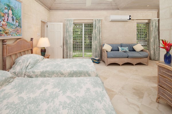 Guests staying within the world famous Sandy Lane Estate will have complimentary access to all Clubhouse facilities including beach chairs, umbrellas and tennis courts. Casuarina House is a family-friendly accommodation on the west coast of Barbados. With commanding views of the verdant fairway and the Caribbean Sea, this single-level, 5-bedroom property offers tranquilly and cooling breezes. The spacious living and dining areas, along with a family room, provide ample space for gatherings and open onto a covered terrace for outdoor dining and lounging under the stars. A private pool and sun deck overlooking the golf course provide the perfect spot for relaxation. The large, open living and dining areas and family room provide ample space for gathering. On one side, they open onto the courtyard entrance and on the other, they flow out to the covered terrace. This expansive, covered space is set for 8—perfect for casual dining under the stars and relaxed lounging. Just off this area is a private pool encircled by a sun deck overlooking the golf course. A table on one end of the deck provides al fresco dining for four. Four en-suite bedrooms with air conditioning encircle the courtyard of the main house. The original hardwood floor beautifully complements the master bedroom, complete with a private patio leading to the pool deck. The cozy, 1-bed cottage, connected to the main house by a brick pathway, affords beautiful views of the manicured grounds and adds the fifth bedroom.