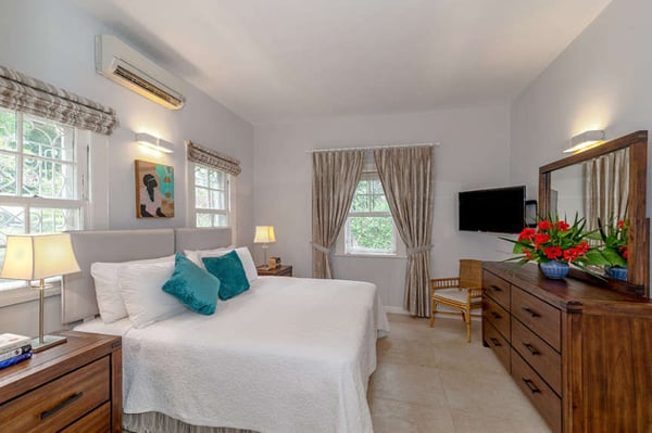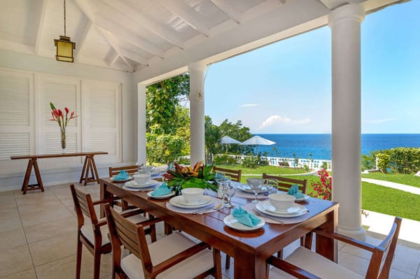 Wag Water is a charming three-bedroom villa overlooking the sea and forming part of the historic Prospect Estate. The combination of a spacious living room along with an extensive covered veranda, with ample space for lounging and dining, provides the best of both indoor and outdoor living. Each of the air-conditioned bedrooms has its own private bathroom. The tropical garden has a pool, sun deck, and winding stairs leading to a seaside sundeck. Swimming is not recommended at Wag Water due to currents and rocks. The famous Bamboo Beach Club is located just one quarter mile away from sandy beach swimming.