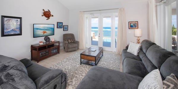 Welcome to Coral Kai, an oceanfront villa along the north shore in beautiful Rum Point. This spacious single-level home invites you to experience beachfront living in its purest form. Unwind on the sandy beachfront that stretches along the villa, offering the perfect setting for lazy afternoons. Step just outside your door to discover exceptional backyard snorkeling. Book a single or tandem kayak with your stay to explore the protected reef. The villa’s freshwater pool offers more than just a swim–it provides elevated oceanfront views, creating an unforgettable backdrop. Pool heat is available only in the winter months for a weekly surcharge. Dining tables and a lounge area are set up under the veranda along with a propane grill. There’s nothing more delectable than alfresco dining with a seaside view. Hire a chef for a night of fine dining or fire up the grill for an island-style beach BBQ. The open kitchen boasts modern appliances, abundant counter space, and breakfast bar seating. Whether it's a quick meal or evening drinks, this space caters to your needs. Coral Kai's interiors are spacious and bathed in Caribbean sunshine through oceanfront windows and French glass doors. A recent redecoration combines beachy vibes with cozy at-home comforts. Beach Notes The entire island is only 22 miles wide from west to east, so you are never too far from anywhere on Grand Cayman. The oceanfront homes in Rum Point offer great reef-protected snorkeling. The beaches usually have plenty of white sand, but can also have spots of rocky “ironshore” with natural rock formations. The closer you get to Rum Point, usually the sandier the beach as well as swimming. Either way, with the abundant marine life we have in the water, you will want to wear pool shoes or fins for foot protection. The prevailing trade winds from the east make flying insects less of a nuisance—many of the homes in Rum Point don’t even need a screened porch. The big draw to this area is the proximity to the Rum Point Club, a public beach club that offers a fantastic barefoot beach, many watersports, a restaurant bar and grill, a gift shop and pick-up beach volleyball games. Also, nearby is the Kaibo Yacht Club restaurant, bar and marina Lastly, we have two large resorts in the east end (Morritt's and The Reef) that offer manicured beaches as well as restaurants, a modern grocery store, liquor store, gift shops, a Subway sandwich shop, and a cafe/pastry shop. These two resorts also offer scuba, snorkel trips, jet skis, windsurfing, kiteboarding, ocean front pools and bar service. General Grand Cayman Beach Notes All beaches in Grand Cayman are technically “public” since the Queen owns up to the high watermark and the shoreline quality behind your property may vary seasonally. Be advised that the beach or water entry behind your property may vary slightly from the images on our website because of the weather. The next-door beach is also always available for your use. Ocean Debris and Sargassum Seaweed Beaches in Grand Cayman may also experience floating ocean debris and sargassum weed seasonally. Sargassum is a generally harmless floating seaweed that has increased in frequency in recent years. Although sargassum is an unsightly nuisance, it is largely seasonal in summer. The owners do make efforts to remove heavy sargassum and will have the beach raked prior to your arrival. We try our best to work around mother nature.