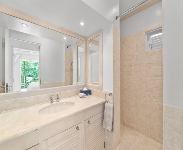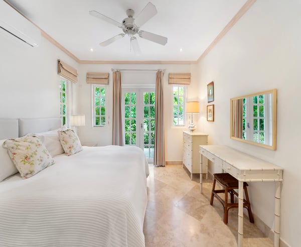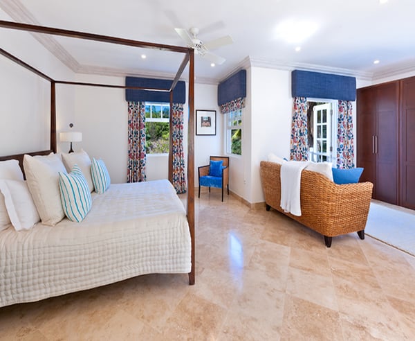 Guests staying within the world-famous Sandy Lane Estate will have complimentary access to all Clubhouse facilities including beach chairs, umbrellas and tennis courts. Moon Dance is a stunning private residence set in almost two acres of beautifully landscaped gardens at the heart of Barbados' renowned Sandy Lane Estate. The villa faces west and overlooks the 8th hole of the famous golf course. Only a short walk down the 9th fairway, past the Old Nine Clubhouse and Hotel Tennis courts, and across the road is the main entrance to the Sandy Lane Hotel and the Sandy Lane Property Owners' beach facility on the island's finest west coast beach. Constructed in 2006 to the owner's specification, the villa offers total privacy in its very quiet location at the end of a cul-de-sac behind electric gates. Its contemporary interior design blends natural and vibrant colours harmoniously along with spacious indoor and outdoor living areas make it the ideal holiday home for a large family or group of friends. The main villa comprises of four double bedrooms, all with en suite bathrooms, and they all are air conditioned with ceiling fans. The master suite has a king 'Tempur' four poster, a private balcony and bathroom with separate shower. All bathrooms feature baths and separate showers.