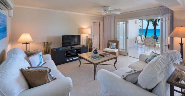 Nearby beach construction may result in noise disturbances. For further details on how this might affect your stay, please reach out to a villa specialist. Reeds House is ideally situated directly on the white sandy beaches of Reeds Bay in an exotic tropical garden setting. The crystal clear waters of the Caribbean are on your doorstep for swimming, snorkelling and other water sport activities. Car parking, 24-hour security personnel, receptionist and private sun beds/umbrellas all add to the enjoyment of your holiday. This penthouse provides luxurious accommodation with panoramic views from every room for 4/6 people. A well-appointed kitchen opens onto the large, air-conditioned living room where you can relax and watch the satellite plasma TV, a DVD or listen to music. An adjoining covered dining terrace overlooks the Caribbean Sea. The master bedroom is beautifully furnished with a king size four-poster bed and has the benefit of en-suite facilities, marble fittings, a large corner bath, a separate shower room and leads onto a private sitting area with wet bar. All bedrooms are air-conditioned and have ceiling fans. The second floor boasts a magnificent 55 foot private roof terrace, which is probably the largest in Barbados. A covered dining area for eight people with wet bar and ice maker leads onto the sun terrace where you can relax on comfortable designer sun-beds and several seating areas or relax in the large spa-pool. This floor also has a third air-conditioned bedroom/sitting room with an immaculate en-suite shower room. Penthouse No. 14 can be rented with Penthouse No. 13 to accommodate a larger group as the two penthouses have inter-connecting doors. Reeds House is a secluded boutique beach-front development between the Royal Pavilion and Cobblers Cove Hotels. Sandy Lane and the Royal Westmoreland golf courses are only a 5 - 10 minute drive away, as are several tennis clubs and health spas. This stretch of coastline, commonly known as the Platinum Coast, is home to some of the Caribbean's finest restaurants and bars. Shopping is close by in Holetown and Speightstown.