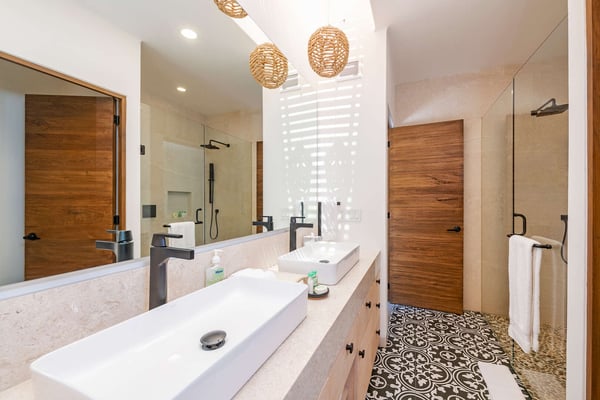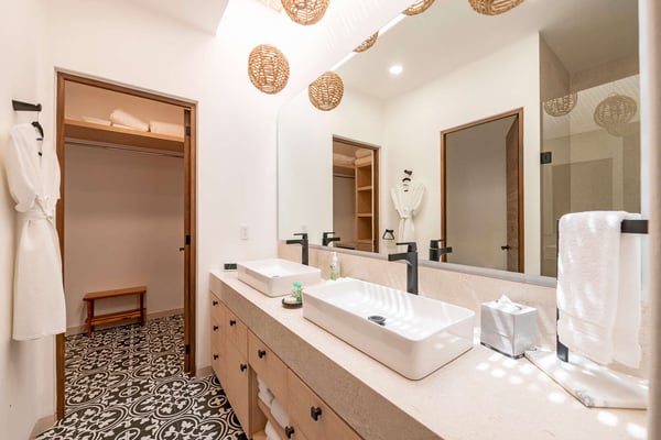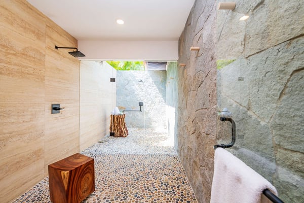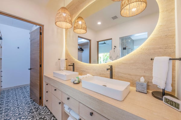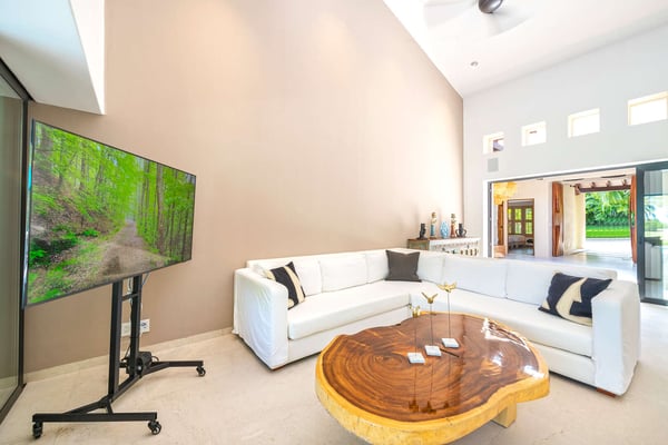 The Premier Golf Membership grants access to Pacifico Golf Course ($), Bahia Golf Course ($), the Tennis Centre ($), the Fitness Center ($), El Surf Club based on min. consumption fee ($), St.Regis Beach Club based on availability and min. consumption fee ($), Pacifico Beach Club, Sufí Ocean Club and Kupuri Beach Club. Contact one of our Villa Specialists for more information. Villa Alfaro is a stunning 9,500 sq. ft. estate set on a half-acre within the prestigious Lagos del Mar community at Punta Mita Resort. This villa’s highlight is its impressive 85-foot infinity pool with breathtaking views of the ocean and Puerto Vallarta in the distance. The serene outdoor spaces feature lush landscapes, expansive lawns, and tropical gardens that seamlessly blend with the property’s architecture.