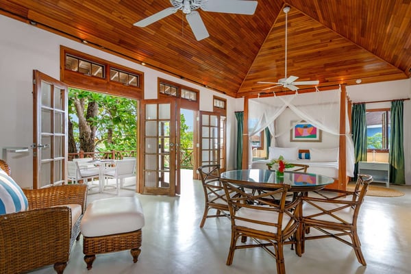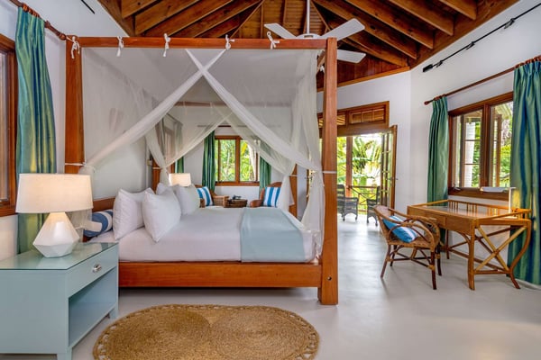 Treat the whole family to our five-bedroom Cottonwood Villa, where a private swimming pool and covered outdoor living space overlook the ocean. This exquisitely furnished villa features five bedrooms with king beds, en-suite bathrooms, private verandas, a fully equipped kitchen, a living room, a dining area, and a powder room.