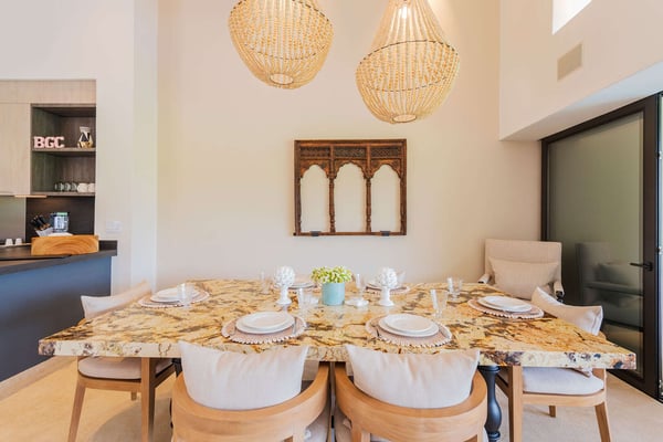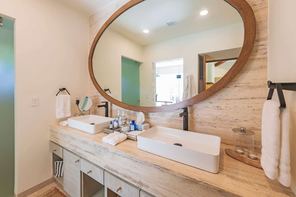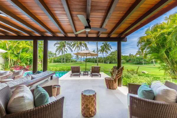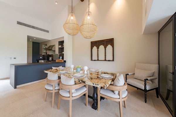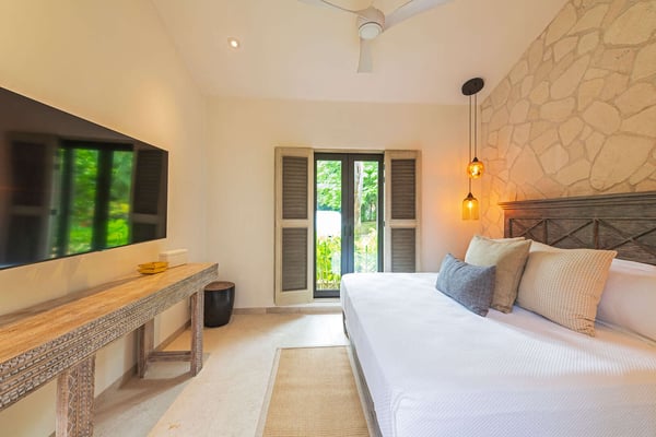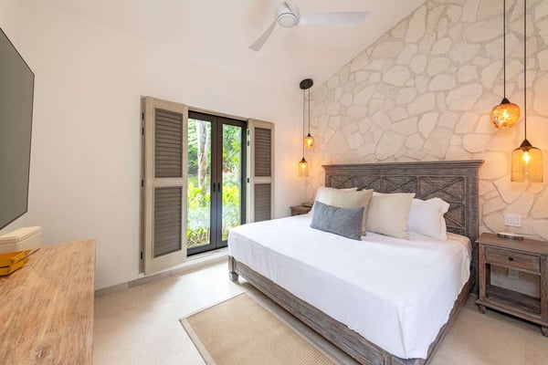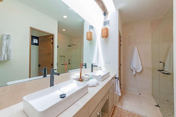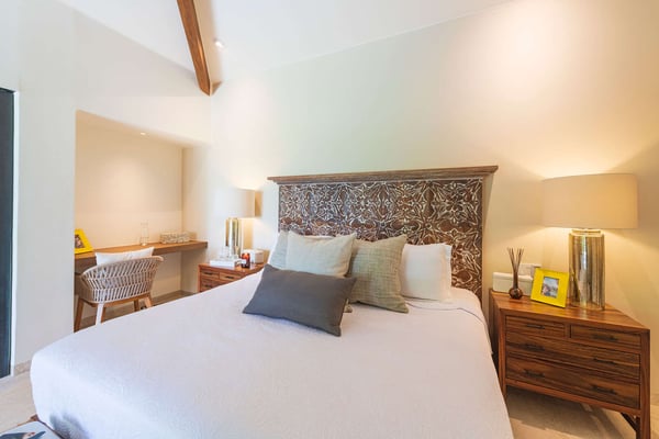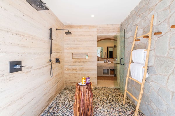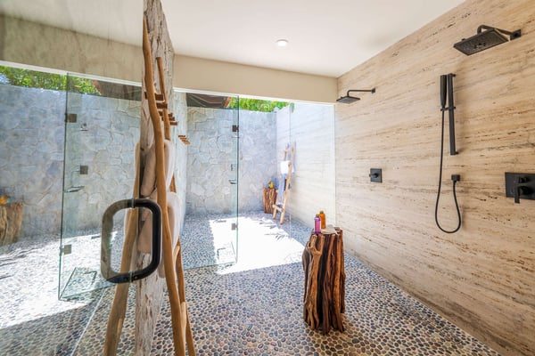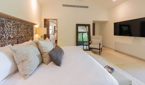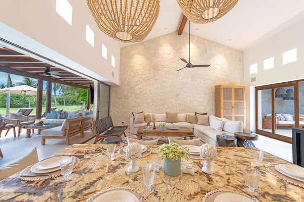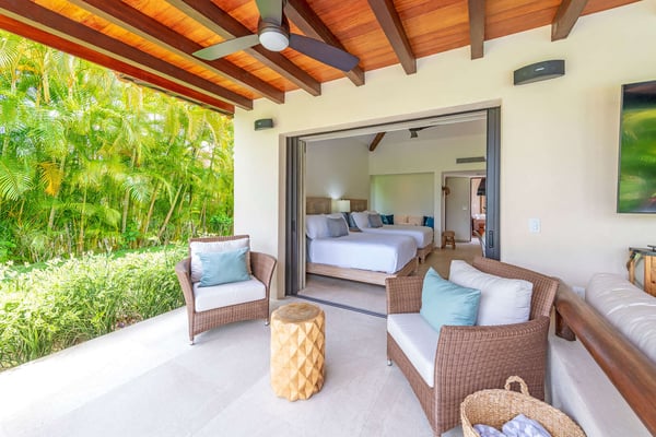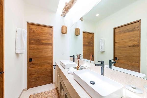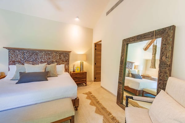 The Premier Golf Membership grants access to Pacifico Golf Course ($), Bahia Golf Course ($), the Tennis Centre ($), the Fitness Center ($), El Surf Club based on min. consumption fee ($), St.Regis Beach Club based on availability and min. consumption fee ($), Pacifico Beach Club, Sufí Ocean Club and Kupuri Beach Club. Contact one of our Villa Specialists for more information. Discover relaxation in this beautifully designed single-level villa nestled within the lush landscapes of Las Palmas de Punta Mita. Villa Frida offers 3 spacious bedrooms, each with its own ensuite bathroom and walk-in closet. The primary suite stands out with two private patios, one featuring an outdoor shower for a luxurious touch. The open-concept living and dining areas seamlessly connect to a large, partially covered terrace, complete with a private plunge pool. This villa also features a central patio with a water feature, fine stone flooring throughout, and an enclosed garage with space for a luxury vehicle and golf cart.