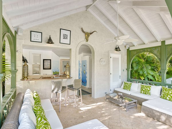 Bajan Heights is a five-bedroom executive villa perched on a ridge overlooking Barbados' West Coast. It seamlessly blends modern finishes with classic island chic, offering spacious living spaces with high ceilings and cool coral stone interiors. The living room features arched doorways that open to a breezy verandah with multiple seating areas. Steps lead to the pool deck and tropical gardens. The formal dining area, seating 10, offers al fresco dining with understated elegance. The pool deck, complete with a wet bar and powder room, provides ideal spaces for entertaining, with sun loungers and dining areas beneath palm trees. A guest cottage boasts a private patio, a king-sized bed, and an en-suite bathroom—ideal for visitors or family members. On the ground floor, another guest bedroom with a king-sized bed opens onto the verandah. The state-of-the-art kitchen features marble countertops and a breakfast bar. The resident cook can whip up island cuisine while you enjoy the views and island activities. The first floor hosts three bedrooms. The master suite, with a king-sized bed, offers a private patio with views of the pool and coastline. The second and third bedrooms feature twin beds and a king-sized bed, each with en-suite bathrooms and private patios. With various entertaining options, this luxurious villa is perfect for family reunions, special occasions, or couples seeking the best of the Platinum Coast. Situated in the Royal Westmoreland community, it is equally close to the bustling Holetown with its restaurants and nightlife and the laid-back Speightstown with seaside dining, beach bars, art museums, and more.