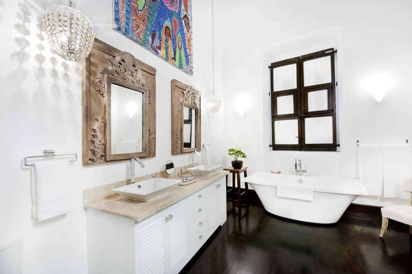 Centuries ago, Casa del Arbol was the home of the architect who carried out important civil and restoration works in the Colonial City. Some original gray and white tiles still remain in the house, reminding us of its former glory and connection to the first Cathedral in the New World. The house has four luxury rooms, each with a private bathroom, which are arranged around the tranquil central patio, and complemented by the lobby, library and outdoor social areas. Its bathrooms stand out for their soaring ceilings, artwork and vintage-style bathtubs. The heart of the house is its courtyard, a tranquil sanctuary where the melodies of tropical birds accompany the visitor under the shade of a majestic mango tree. The interior reflects the rich Dominican culture with local art and furniture ranging from modern to tropical.