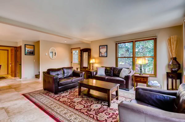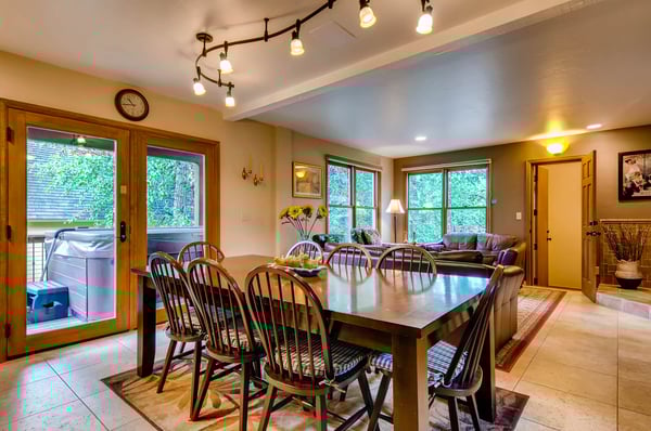Rental Escapes has partnered with Ski Butlers to offer you the best rental experience in the industry. No more lines. Ski Butlers is a full-service ski and snowboard company that delivers the equipment to you and for a limited time, we are offering a free upgrade on the package you select! Contact a villa specialist for more information. Located in historic downtown Breckenridge, this remodeled 10-bedroom chalet boasts fantastic views of the town and the ski mountains and is just minutes from Main Street shopping, dining, and nightlife. Skiers can walk just one block to the free skier shuttle or a 3-minute drive to the gondola parking lot. Any time of year, Great Raven Grande is at the center of activities while still providing a private, quiet location with mature trees for the ultimate Breckenridge family vacation with something for everyone. Great Raven Grande’s 10 bedrooms consist of the lower chalet, Raven’s Bungalow (4 bedrooms), and the upper chalet, Raven’s Call Chalet (6 bedrooms), which can be rented together or separately. Kids and families will enjoy the barn rec room, detached from the house yet easily accessible with ping pong, foosball, a game table, and a pool table. The Raven’s Call has an open floor plan with a comfortable living room with a TV and fireplace, a dining area, and an updated kitchen. Six nicely furnished bedrooms are on three levels with the primary king suite with ensuite and two queen bedrooms on the upper level, a queen room on the main level, and a queen room and bunkroom on the lower level. Guests will enjoy the deck off the living room with a grill, and sitting area. Amenities include a washer and dryer, 2 car garage parking with parking for 4 cars total. The Raven’s Bungalow has an open floor plan with a spacious kitchen with bar seating, a dining area, and a cozy living room with a fireplace and plenty of natural light. The upper level includes a primary king suite two queen bedrooms and a bunk room on the lower level that sleeps three. Enjoy mountain views from the deck with seating, a grilling area, and a hot tub. Amenities include a washer and dryer, 1-car garage parking, and parking for four cars in total. Regretfully, weddings and events are not permitted. This home enjoys complimentary use of the shuttle, mid-November through mid-April, using the convenient shuttle app to schedule pickups. The use of the shuttle is on a first-come, first-served basis. This home does not have air conditioning. Colorado's cool summer nights will keep this home comfortable by opening windows after the sun goes down, and then closing the windows and blinds during the day. Utilizing the overhead fans, if available, keeps airflow moving, and additional floor fans can be found in many bedroom closets. Can't live without it? A/C units may be available for rent for an additional fee. Great Raven Grande Business License: 26733 5,898 sq. ft.