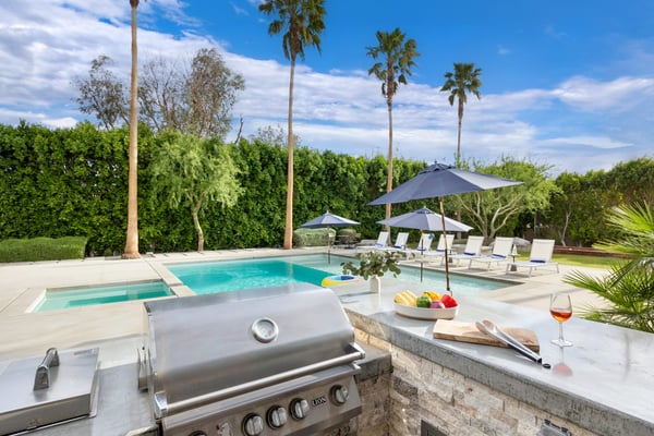 • Please note that the photos may not be exactly accurate to the furnishings of this home, but the layout and amenities are similar and comparable. • This home allows pets for a fee. Any undisclosed pets brought in without approval will result in a $500 fine per pet. Please note that the backyard gates are wide enough for a small dog to get through, so we recommend supervising pets when outdoors. • Occupancy includes an additional two beyond bed count. 2 twin rollaway beds and additional linens are located in the primary closet. • All bedrooms feature an ensuite bathroom. • POOL & SPA: Pool heat is available at this home at an extra cost and needs to be requested at least 48 hours before your stay. Spa Heat is complimentary for guests. Pool heat is not available between May 1st and October 1st. Our desert pools are heated to a maximum temperature of 86 degrees. Please note that we do not exceed this temperature for pool heating. If you opt for pool heat please know that pool heat and spa heat can only be run one at a time, not concurrently. During the summer months, desert temperatures are extremely high, which may cause the pool temperature to rise as well. Unfortunately, there is nothing we can do to control this. • Please note that the pool sun loungers do not have cushions and we are unable to provide them upon request, we apologize for this inconvenience. • Our homes feature NFL Sunday Ticket programming through the TV's YouTube subscriptions in each room for full sports streaming entertainment. • Please be aware that during festivals like Coachella, although the Villas are within walking distance of the polo grounds, road closures and specific access points can extend the walking distance to the festival entrance to approximately 1.4 miles. While some guests choose to walk and walking is possible, we strongly recommend purchasing golf cart services for easier access. • Please be aware of wildlife such as insects, scorpions, and snakes. Our team does their best to check the home before your arrival, but please be mindful about leaving the doors & windows open during your stay. • Each home can accommodate up to 5 cars. • You must be at least 21 years old to book this property. • This is a smoke-free home. Violation of the no-smoking policy will result in a $500 fee for additional cleaning and other related costs, in addition to the Guest being responsible for any damages attributable to smoking beyond said fee. • Please be considerate of your neighbors and mindful of noise levels. Noise violations may result in fines. Please also note we do not provide speakers or sound systems. • The rates for this property are dynamic and are constantly changing. The price listed above is only a starting rate and does not necessarily reflect the price for your travel dates. Please contact a Villa Specialist for exact pricing details.