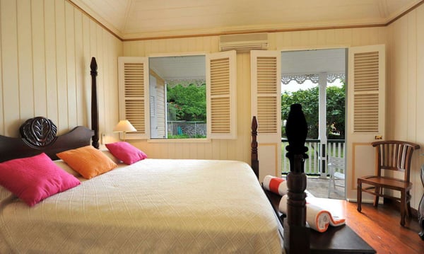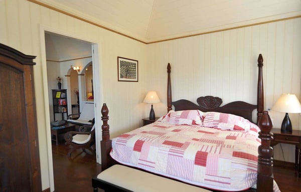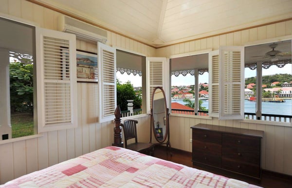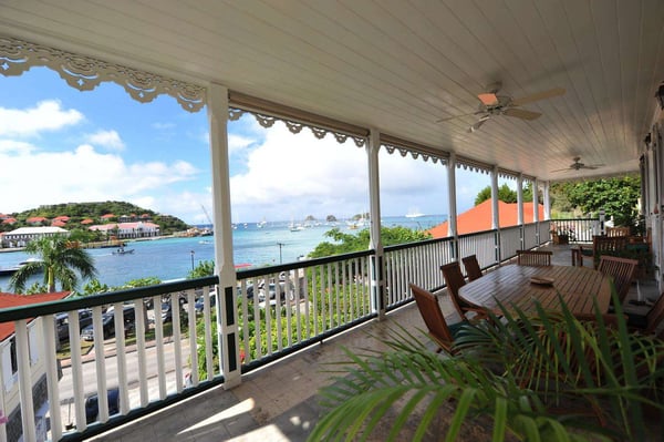 Vialenc is one of the last architectural colonial villas of the island. It is located in an exceptional location at the entrance of Gustavia harbour. The villa dominates the harbour entrance and the ocean views toward the sunset. The villa has been renovated recently and its colonial-style has been protected with exotic wood floor, high ceilings, and four posted mahogany beds. All the shops, restaurants, and bars of Gustavia are accessible by walking from the villa. Traffic in Gustavia and the style of the villa with its openings with louvred wooden generate noise in the villa. Villa Vialenc could be rented with the flat next door Ostran and becoming together a five-bedroom property.