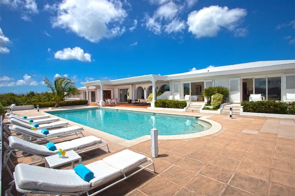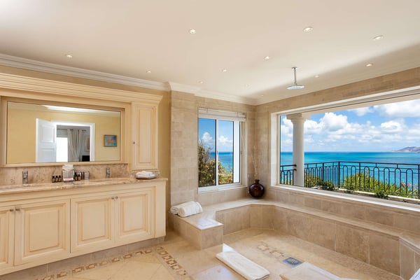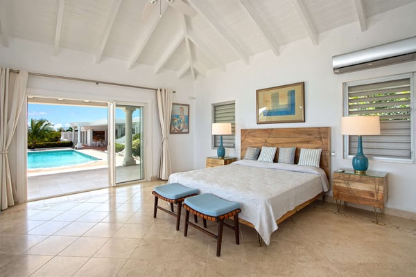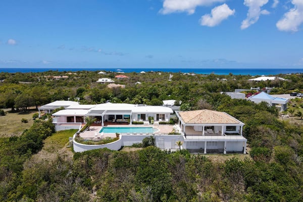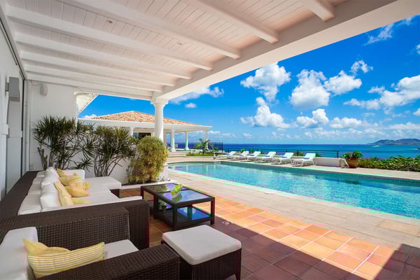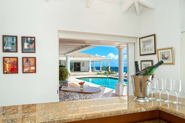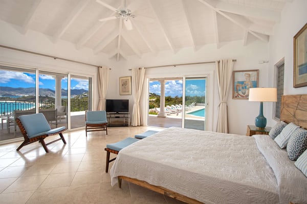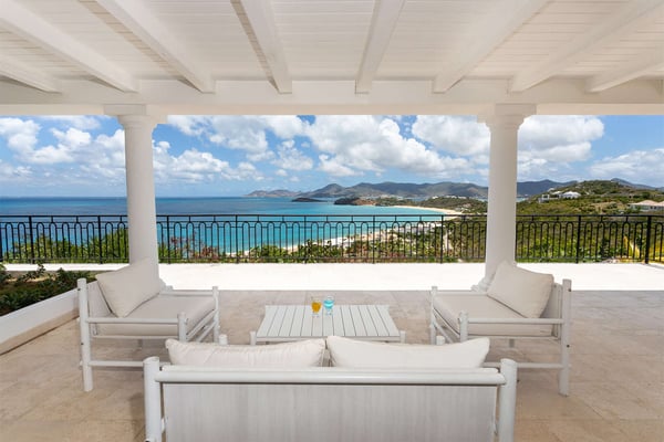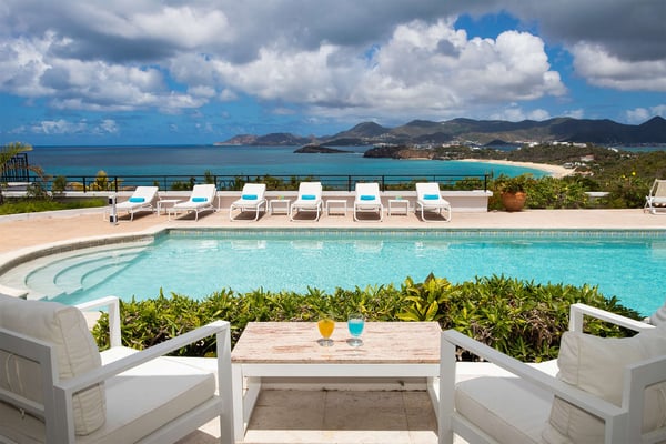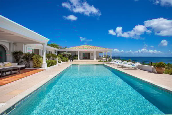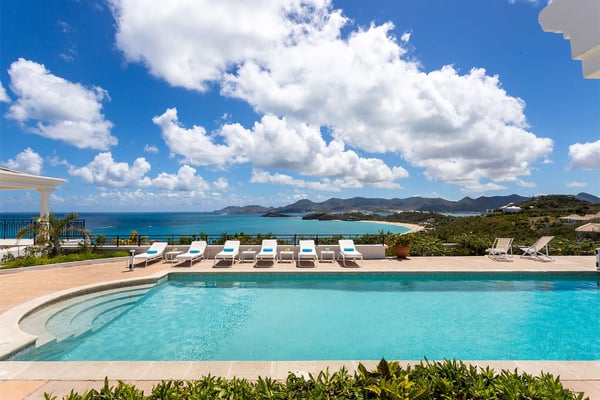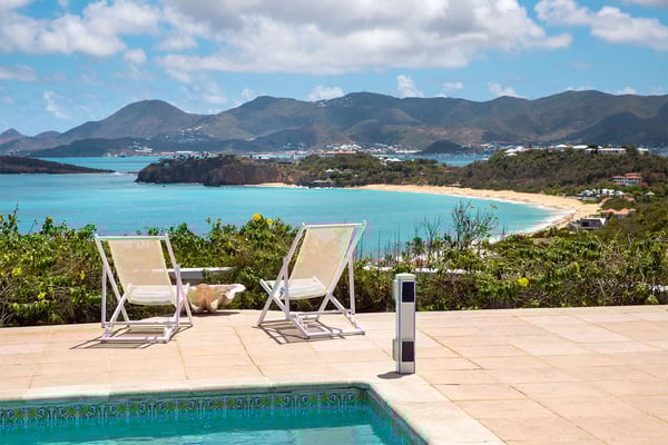 Perched above the shimmering turquoise waters of the Caribbean Sea, Villa Beaulieu offers an extraordinary vantage point over Baie Rouge Beach, with uninterrupted views stretching toward the neighboring island of Anguilla. This exclusive single-level villa is a true Caribbean sanctuary, where sky, sea, and mountain meet in perfect harmony: a living postcard by day, and a serene retreat under the stars by night. The villa features three oversized primary suites, each beautifully finished in Italian tumbled marble and offering panoramic sea views, even from the en-suite bathrooms. Each suite opens onto its own private terrace and either a secluded patio or garden, allowing guests to connect with the outdoors in complete privacy. Inside, the villa flows seamlessly between indoor and outdoor living. A spacious double living room connects to a formal dining room framed by graceful arches, as well as outdoor dining and lounge areas. The fully equipped kitchen, outfitted with granite countertops and a wide pass-through window to the terrace, overlooks Baie Rouge and invites effortless entertaining. One of Beaulieu’s most iconic features is its exceptionally large 50' x 20' pool, a rare luxury even among the island’s finest villas. Perfectly positioned to capture sweeping sea views and the caress of ocean breezes, the pool area is the heart of the villa’s outdoor living, an ideal setting for sun-drenched days and starlit evenings. Throughout the villa, gentle trade winds offer a natural airflow, perfect to offer a cooling breeze for St. Martin's (average) temperature of 80°F (27°C). Though Beaulieu feels worlds away, it is conveniently located just a short drive from the island’s top culinary and cultural destinations. Within minutes, guests can reach Baie aux Prunes, Baie Nettle’s renowned restaurants, and the charming French capital of Marigot, known for its boutiques, bakeries, and lively Creole market. The airport is only 20 minutes away by car. A home defined by timeless design, breathtaking views, and elegant simplicity, Villa Beaulieu is a place where nature, luxury, and meaningful connection come together. A destination guests fall in love with, and return to, time and again.