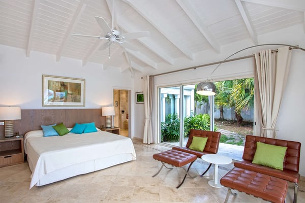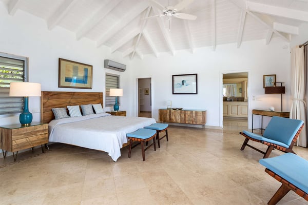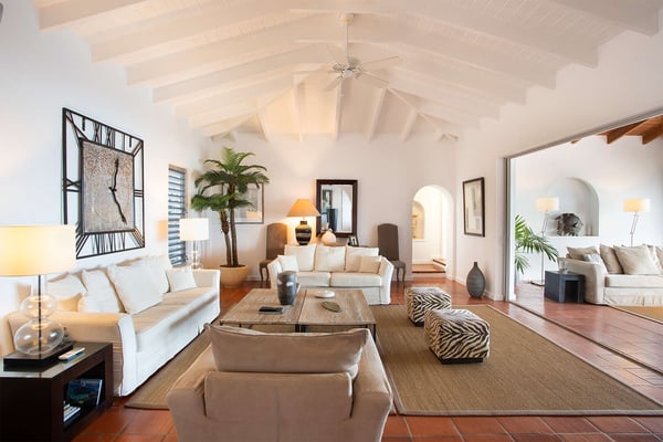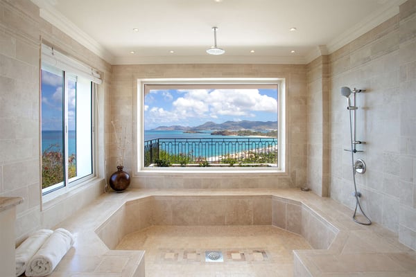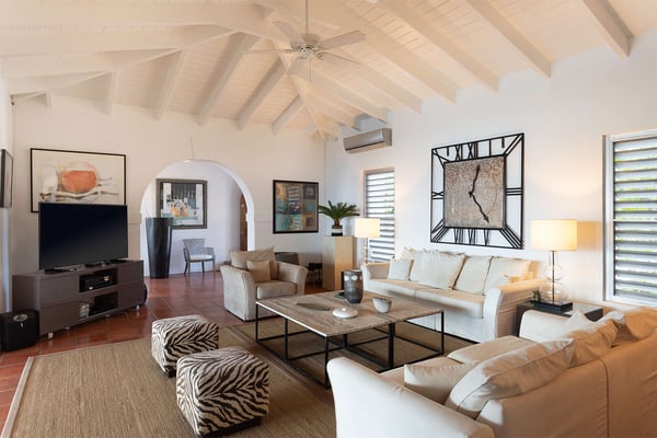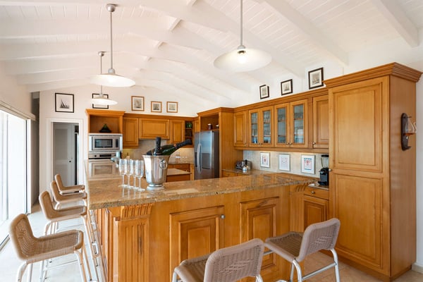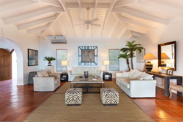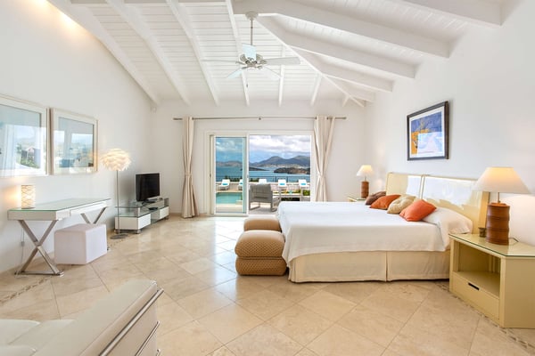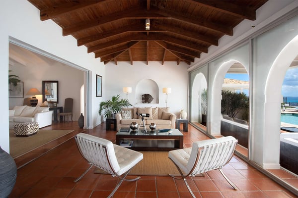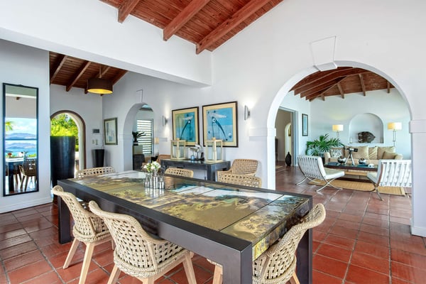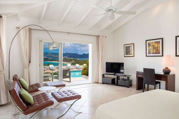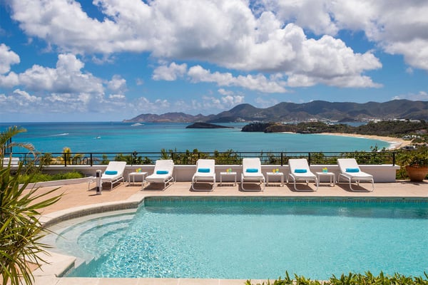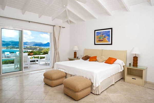 Perched above the shimmering turquoise waters of the Caribbean Sea, Villa Beaulieu offers an extraordinary vantage point over Baie Rouge Beach, with uninterrupted views stretching toward the neighboring island of Anguilla. This exclusive single-level villa is a true Caribbean sanctuary, where sky, sea, and mountain meet in perfect harmony: a living postcard by day, and a serene retreat under the stars by night. The villa features three oversized primary suites, each beautifully finished in Italian tumbled marble and offering panoramic sea views, even from the en-suite bathrooms. Each suite opens onto its own private terrace and either a secluded patio or garden, allowing guests to connect with the outdoors in complete privacy. Inside, the villa flows seamlessly between indoor and outdoor living. A spacious double living room connects to a formal dining room framed by graceful arches, as well as outdoor dining and lounge areas. The fully equipped kitchen, outfitted with granite countertops and a wide pass-through window to the terrace, overlooks Baie Rouge and invites effortless entertaining. One of Beaulieu’s most iconic features is its exceptionally large 50' x 20' pool, a rare luxury even among the island’s finest villas. Perfectly positioned to capture sweeping sea views and the caress of ocean breezes, the pool area is the heart of the villa’s outdoor living, an ideal setting for sun-drenched days and starlit evenings. Throughout the villa, gentle trade winds offer a natural airflow, perfect to offer a cooling breeze for St. Martin's (average) temperature of 80°F (27°C). Though Beaulieu feels worlds away, it is conveniently located just a short drive from the island’s top culinary and cultural destinations. Within minutes, guests can reach Baie aux Prunes, Baie Nettle’s renowned restaurants, and the charming French capital of Marigot, known for its boutiques, bakeries, and lively Creole market. The airport is only 20 minutes away by car. A home defined by timeless design, breathtaking views, and elegant simplicity, Villa Beaulieu is a place where nature, luxury, and meaningful connection come together. A destination guests fall in love with, and return to, time and again.