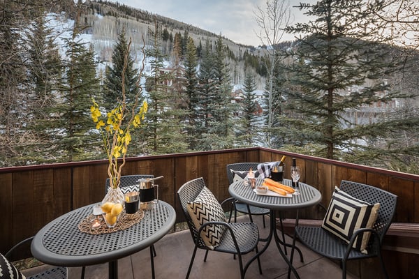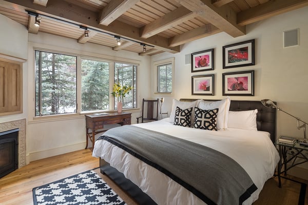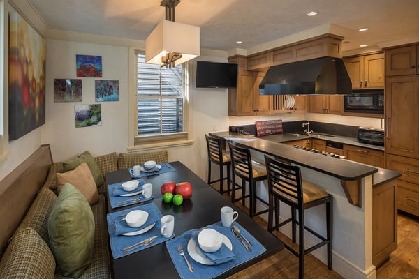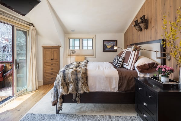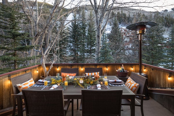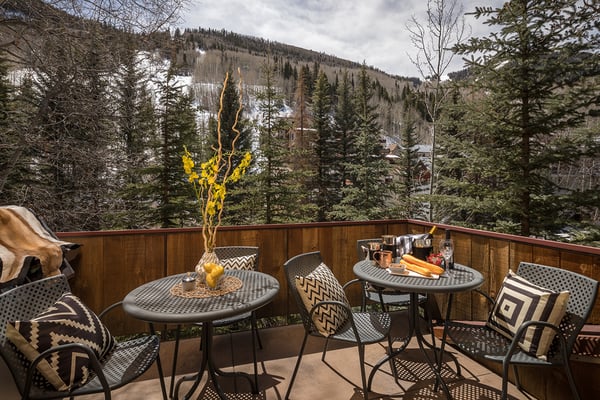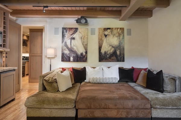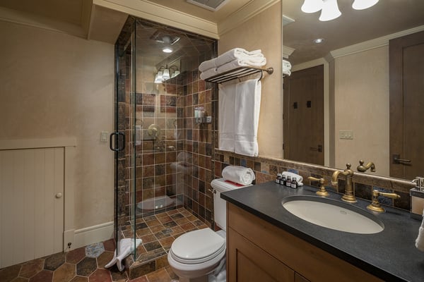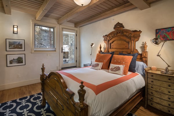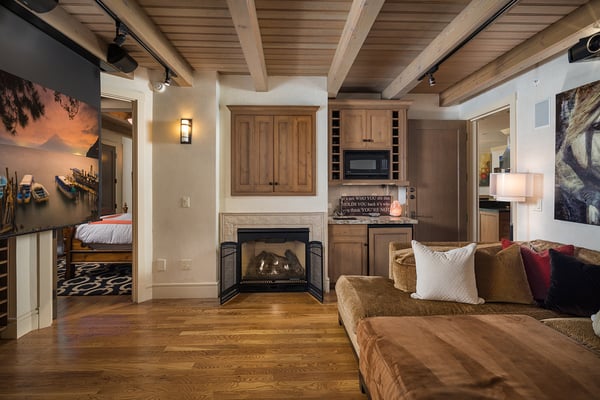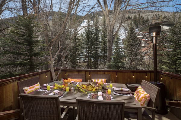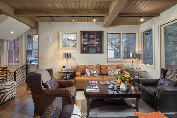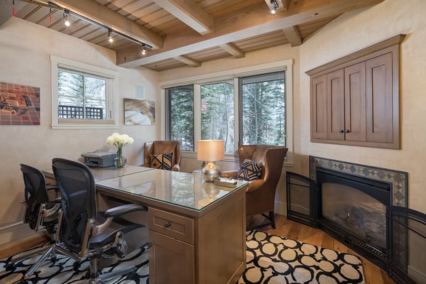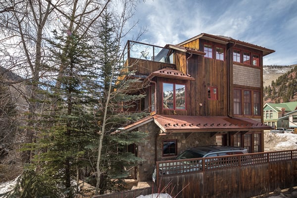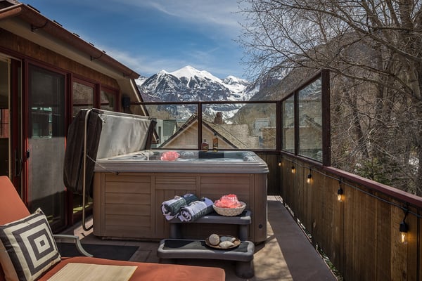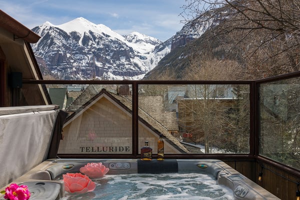 Nearby construction may result in noise disturbances. For further details on how this might affect your stay, please reach out to a villa specialist. Nestled on Telluride's desirable Depot Avenue, overlooking the San Miguel River and the River Trail in downtown, River Bliss is a truly opulent vacation rental waiting to be discovered. Just a short stroll from the gondola and Main Street, River Bliss is unique in its rare combination of quintessential convenience and total privacy. Making tree house living a true reality, the home is surrounded by mature aspen, spruce, and cottonwood trees, accompanied by the gentle sound of the flowing river waters. As an extra bonus, guests of this home receive two complimentary ski passes during each day of their stay. The home's entryway guides guests to the great room upstairs, where guests are immediately greeted by a plush living space, decorated to the height of taste and boasting the finest finishes and furnishings as are consistent across all four levels of the home. In the living area, a leather sofa, bench seat, and two armchairs surround a dual-sided fireplace, which also faces the dining room with seating for up to eight guests. Serving this space is the gourmet kitchen with its stainless steel appliances, breakfast bar for three, and a wet bar in the living room. Entertaining is a pleasure year round with the two living levels, and heated patios - one with an al fresco dining table and seating for six, while the other offers two bistro tables and a gas grill. Rounding out this level is a full laundry room as well as a queen guest bedroom and en suite bathroom with tub/shower combination. Occupying the entire top floor of River Bliss is the incredible Primary Suite. A primary office is positioned at the top of the stairs, with the attached patio offering breathtaking views of Ajax Peak, as well as a hot tub for six and lounge seating. This patio extends along the length of the house and connects to the Primary Bedroom, which is just as comfortable as it is beautiful. Vaulted ceilings, a king-size bed, a gas fireplace, and a flat-screen TV can be found in the bedroom, while the en suite bathroom plays host to dual vanity sinks, a jetted tub with chromotherapy, and a separate steam shower. The home's entry level has a full office with a gas fireplace, as well as a coat closet, powder room, and secondary Suite. The bedroom has a king-size bed, flat-screen TV, and gas fireplace, as well as a large en suite bathroom with dual vanity sinks, another chromotherapy jetted tub, and a separate steam shower. The lowest level of the home is a sanctuary for those looking for some rest and relaxation after a fun-filled day of hitting the slopes whether it be by skis or bike. At the bottom of the stairs, a media room with an oversized sectional, gas fireplace, projector screen, and wet bar (with microwave and wine cooler) is the ideal place from which to watch a movie or the big game. A bathroom with a shower stems off this room and is shared with the connecting queen bedroom. Opposite this bedroom is a lock-off, featuring a full kitchen with a breakfast bar for three, a breakfast nook with seating for up to six, two guest bedrooms, and a second laundry room. The first guest bedroom has a captain's bunk with a twin bed on top and a full-size bed on the bottom, while the other bedroom has a queen-sized bed. Both bedrooms share a bathroom with a tub/shower combination. With parking for one large or two compact vehicles, a central downtown location easily walkable to all of the best that Telluride has to offer, and top-of-the-line finishes throughout, River Bliss is absolute perfection in the heart of North America's top ski destination. TOT BL# 00658