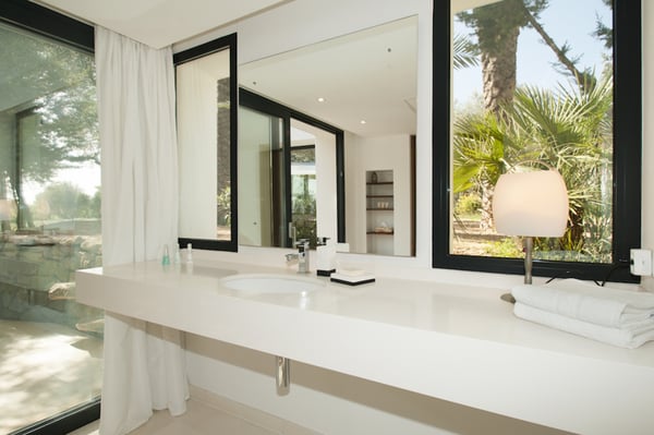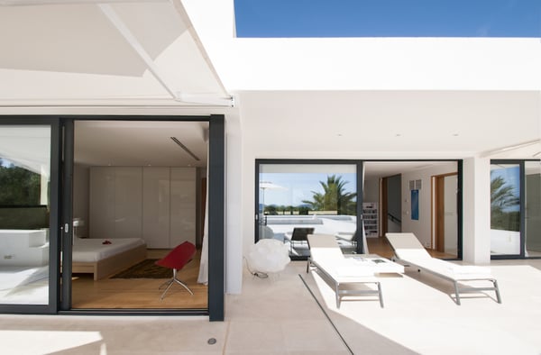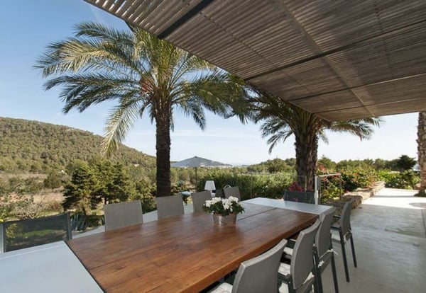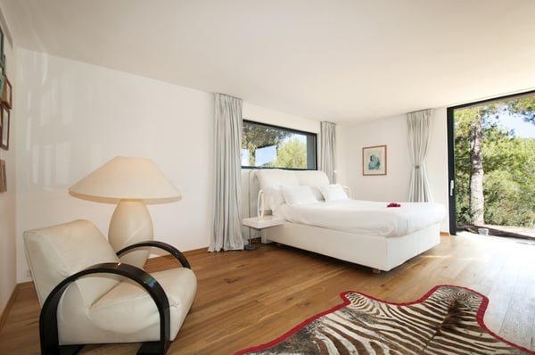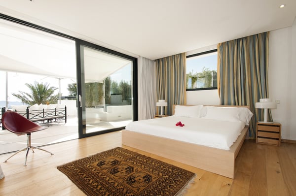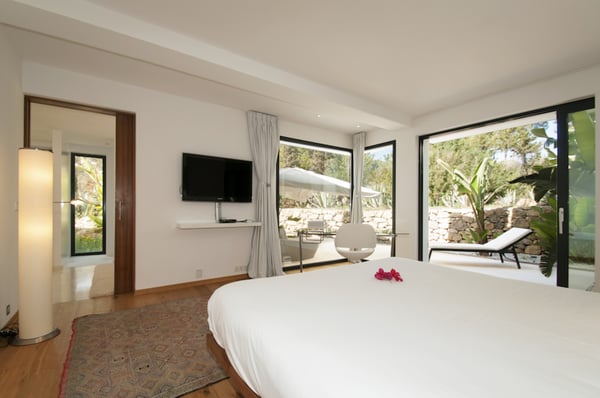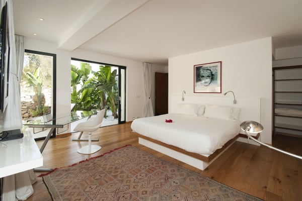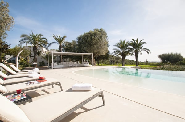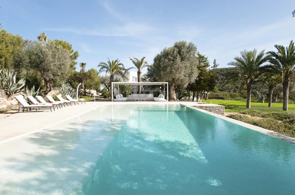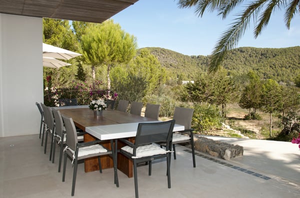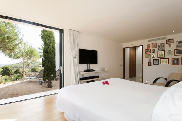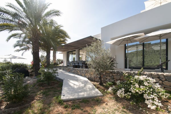 Surrounded by palm trees and a typical Mediterranean, well-tended garden creating a relaxing atmosphere, this attractive contemporary villa for twelve boasts ample grounds encompassing a large infinity pool with beach-style entry and many chill-out areas from which to enjoy the inspiring vista over the sea and the renowned salt flats in Ibiza. With Ibiza Town just four kilometres away, this property is conveniently located for shops, restaurants, the airport and the beach. The property boasts a huge, bright open plan lounge, dining room and fully equipped ultra-modern kitchen with floor-to-ceiling glass doors. The lounge has large comfortable sofas and all high quality fixtures and fittings. The property is fully air-conditioned and there is access to wireless internet throughout. Set over 30,000 square metres of land, the villa has huge open living spaces and an amazing 17 metre long swimming pool (beach entry style), a huge chill out area, lounging areas, sunbeds and sunbathing areas and a wonderful outdoor dining area with barbecue. License Number: ETV-2290-E / ESFCTU0000070010000490254000000000000000000ETV-2290-E5v