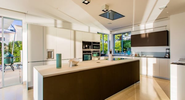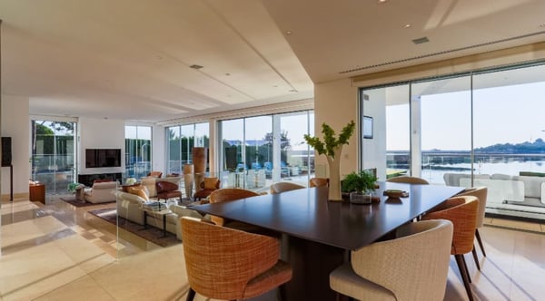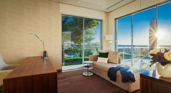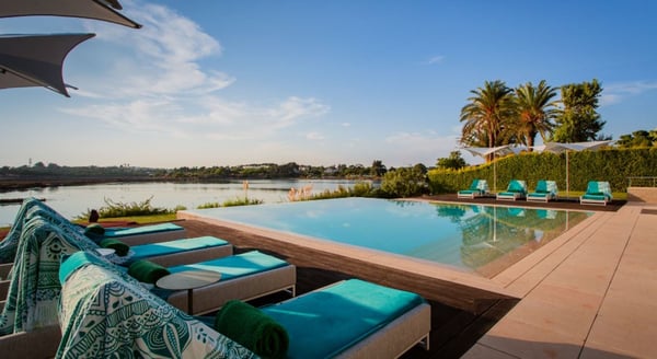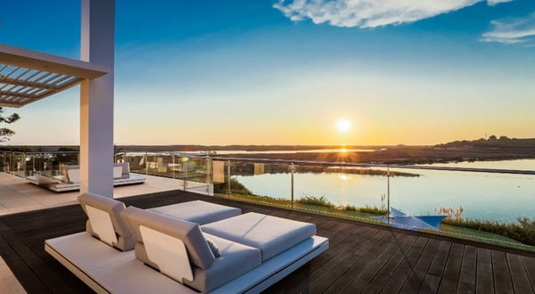 Gaze at the most striking sunsets over the water of the Ria Formosa in Quinta do Lago as you spend a memorable holiday at this villa with a heatable pool, spa and home cinema. A stunning state-of-the-art waterside villa with arguably the best views in Quinta do Lago, especially at sunset. A brand new spa and cinema have been recently added. This residence exudes quality and is built to the highest of standards. Surrounded by lush vegetation & various ambient additions including citronella mist effects & exterior mood lighting that runs around the house and into the pool. Lovely private garden sloping down to the river, lawn areas, palm trees, hedgerows, splendid river views. You will find a decked pool terrace, private infinity heatable pool, covered terraces, outdoor living and dining furniture.