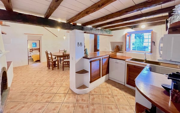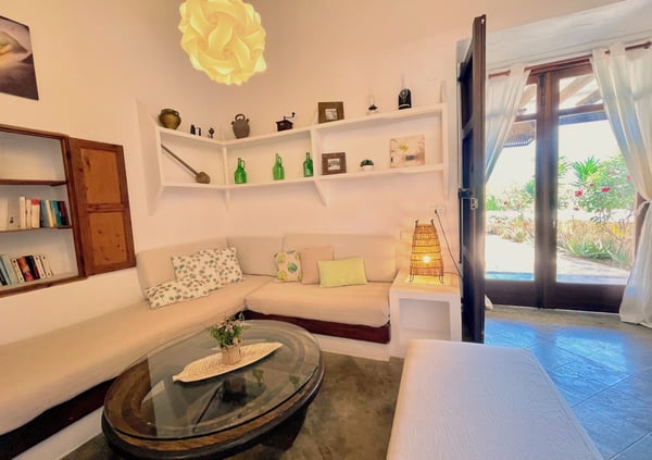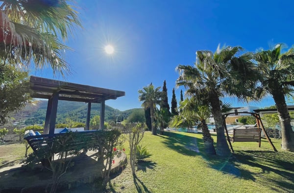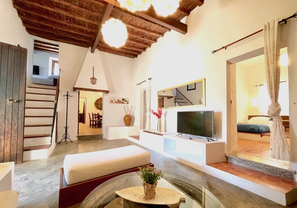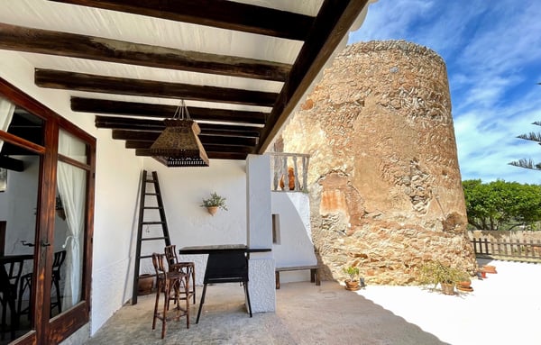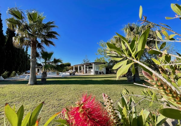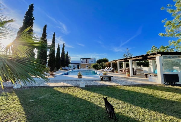 Can Elissa is an Ibiza-style country house located on a small hill on a plot of 15,000 m2 in the countryside with the convenience of having the village of San Jose only 400 metres away. A space that will offer comfort and well-being in nature. Meticulous care and quality of service, all in a private and exclusive environment. Can Elissa was built in the eighteenth century and has been carefully restored, retaining elements and architectural features, representative of the culture of Ibiza. Outside, the vast gardens are beautifully maintained featuring mature palm trees and lush lawns, with plenty of space for children to run free, as well as many places to sit and relax. Inside, its high ceilings, spacious rooms, and thick stone walls provide the ideal indoor temperature in any season. Can Elissa stands out for its welcoming spirit, simplicity, and comfort. License Number: ET-0593-E