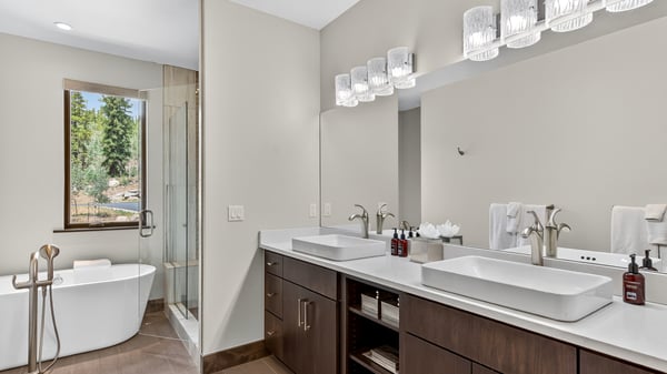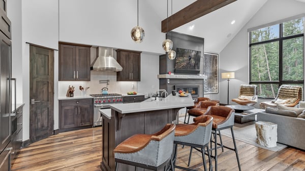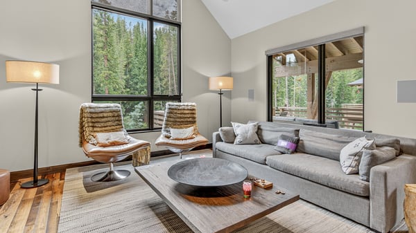 Ski Butlers offers you the best rental experience in the industry. No more lines. Ski Butlers is a full-service ski and snowboard company that delivers the equipment to you. Contact a villa specialist for more information. Restoration on the River is a newly constructed duplex, infused with taste and style for the luxury lifestyle market. Completely furnished with inspired modern contemporary design, creating unparalleled quality in every detail. Walk outside to the private patio and enjoy warmth by the fireside while you listen to the river run by. Enjoy this perfect home just minutes from Main Street Breckenridge. This new 4-bedroom, 4.5 bath home is fully furnished with high-end decor and furniture and is just a 3-minute drive to the Village at Breckenridge for access to Peak 9 Quicksilver SuperChair, or a 3-minute walk (.1 mile) to the free shuttle stop on River Park Drive. This 2,883 square foot beautiful home is perfect for vacations and entertaining, with a private back patio overlooking the Blue River, an outdoor fire pit for gathering a hot tub for relaxing after a long day. Find a bright and open kitchen, dining, and great room on the main level. Comfortable furniture, a modern fireplace, and large television invite you to the great room area to recap the day’s events and enjoy good company with beautiful views overlooking the forest surrounding the Blue River. A stunning gourmet kitchen features a Wolf gas range with six burners, a Sub-Zero refrigerator/freezer with ice maker, custom cabinetry, modern touches, and a center island bar overlooking the dining and great rooms with additional seating for four. An elegant dining area seats 10 for family gatherings. In warmer months, access the top-level deck from the dining area for al fresco seating options, a grilling area, and comfortable patio furniture. On the upper level is the primary king suite with a gas fireplace, television, reading area, and beautiful ensuite with soaking tub, dual sinks, and a large walk-in shower. Retire to the lower level and enjoy a family room with a comfy sectional sofa and smart TV. From here, make your way out to the lower patio to access the fire pit, hot tub, and river. Three more bedrooms are on this level including a king suite, a queen suite, and a kid’s room with built-in bunks and a shared hall bath. Other amenities include a two-bay heated car garage, an entryway mudroom area for gear, a washer and dryer, and a sound system. Regretfully, weddings and events are not permitted. This home enjoys complimentary use of the shuttle, mid-November through mid-April, using the convenient shuttle app to schedule pickups. The use of the shuttle is on a first-come, first-served basis. This home does not have air conditioning. Colorado's cool summer nights will keep this home comfortable by opening windows after the sun goes down, and then closing the windows and blinds during the day. Utilizing the overhead fans, if available, keeps airflow moving, and additional floor fans can be found in many bedroom closets. Can't live without it? A/C units may be available for rent for an additional fee. Restoration on the River Business License: BCA-80065 2,883 sq. ft.